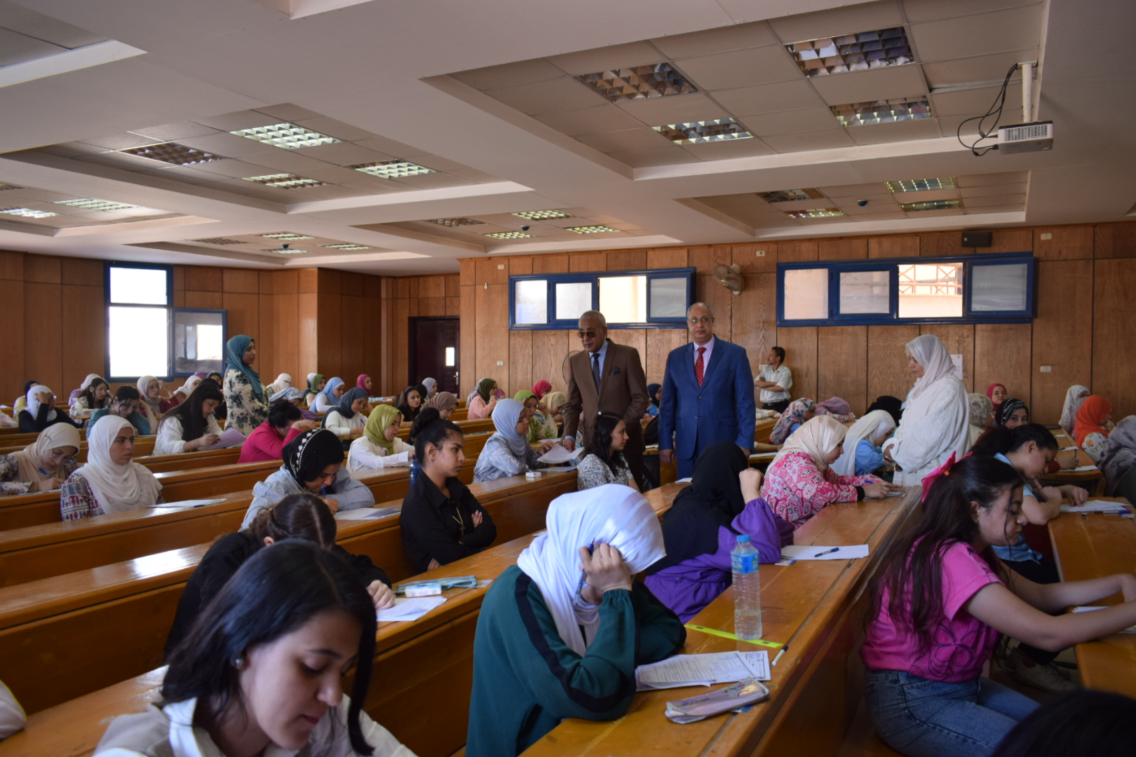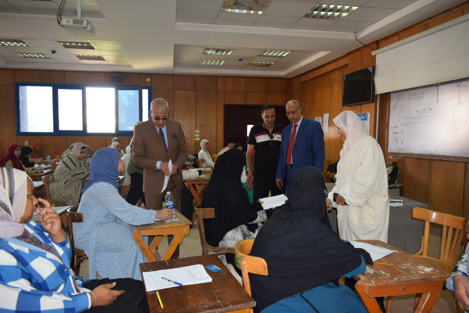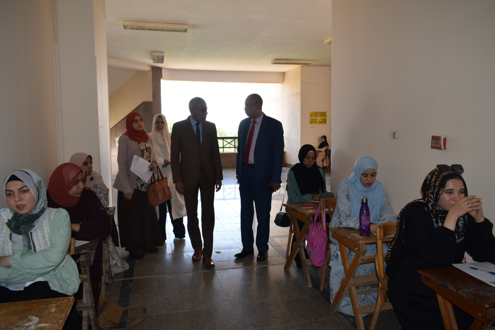 نائب رئيس الجامعة والسيد عميد الكلية في جولة تفقدية لمتابعة سير الامتحانات