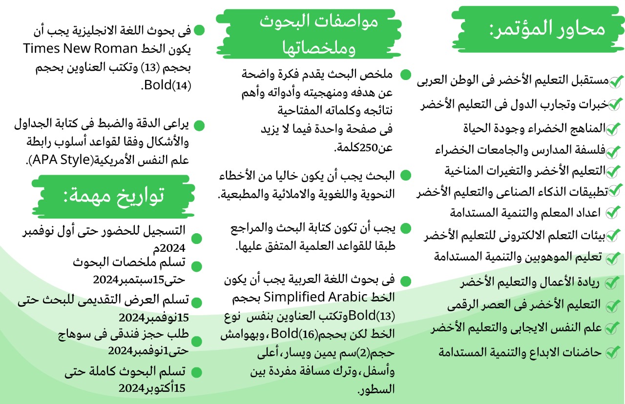 المؤتمر العلمي الدولي الثالث، بعنوان ” التعليم الأخضر والتنمية المستدامة: رؤي مستقبلية”