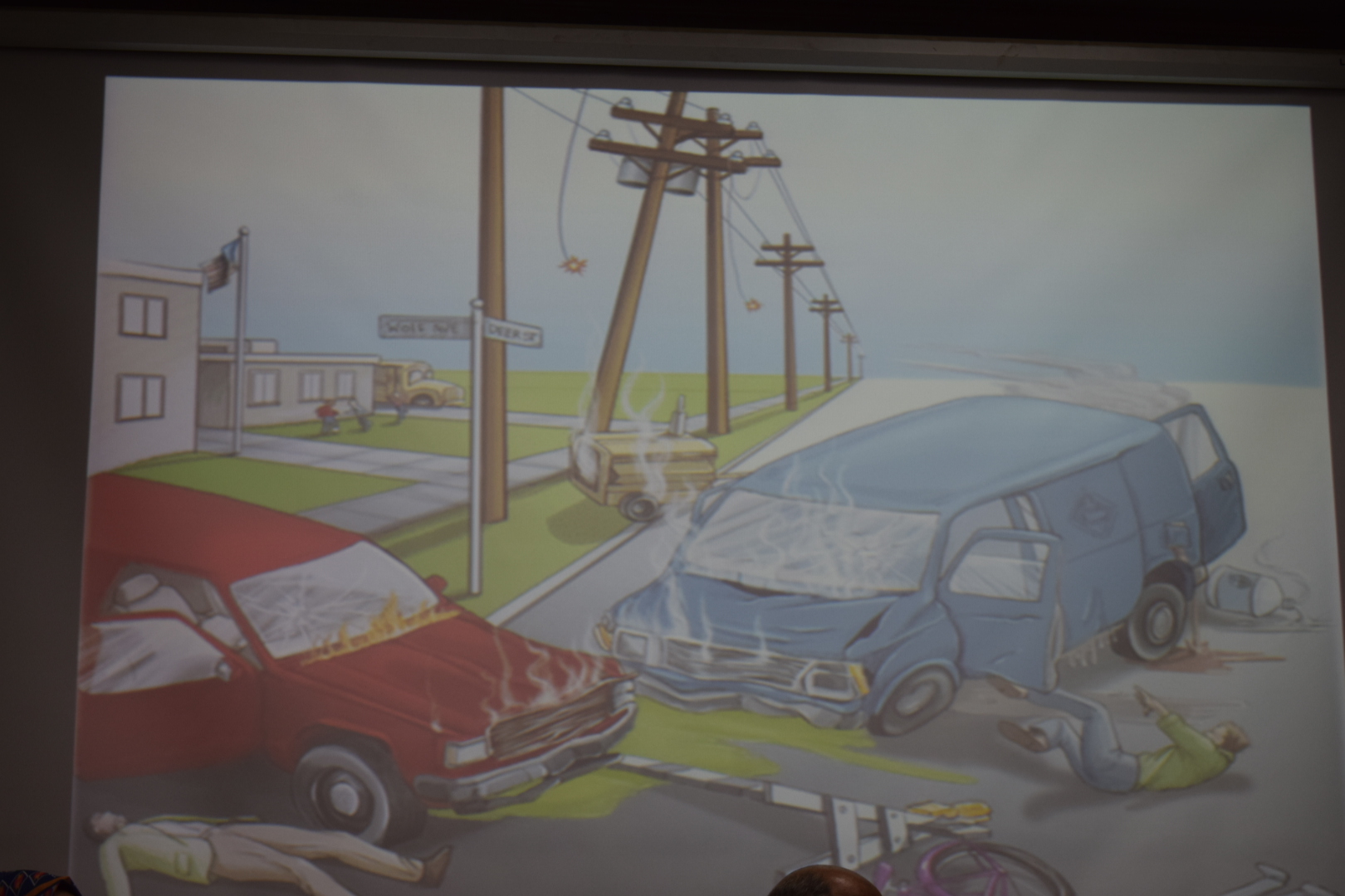 وكذلك كيفيه التعامل مع المصاب لحين وصول الإسعاف والتأكد من الأمان وتقديم المساعده الممكنه للمريض.