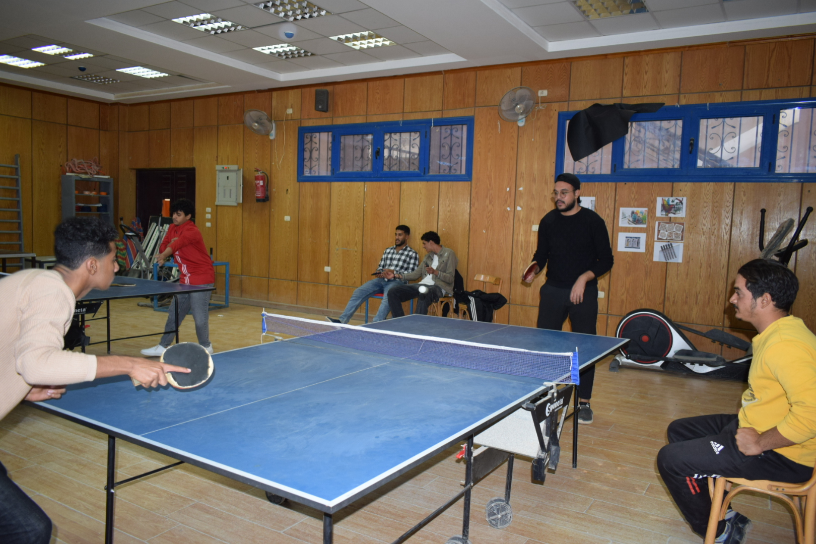فعاليات مسابقة تنس الطاولة التي أقامتها إدارة رعاية الشباب بالكلية ضمن فعاليات مبادرة “بداية” لبناء الإنسان المصري