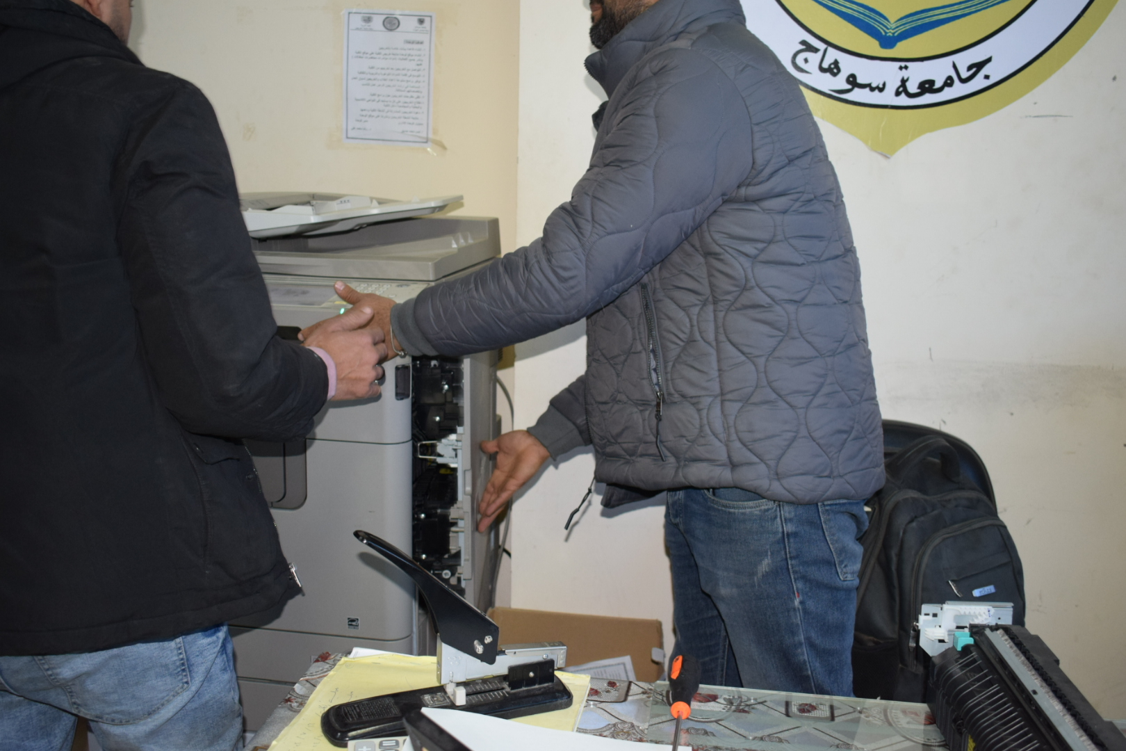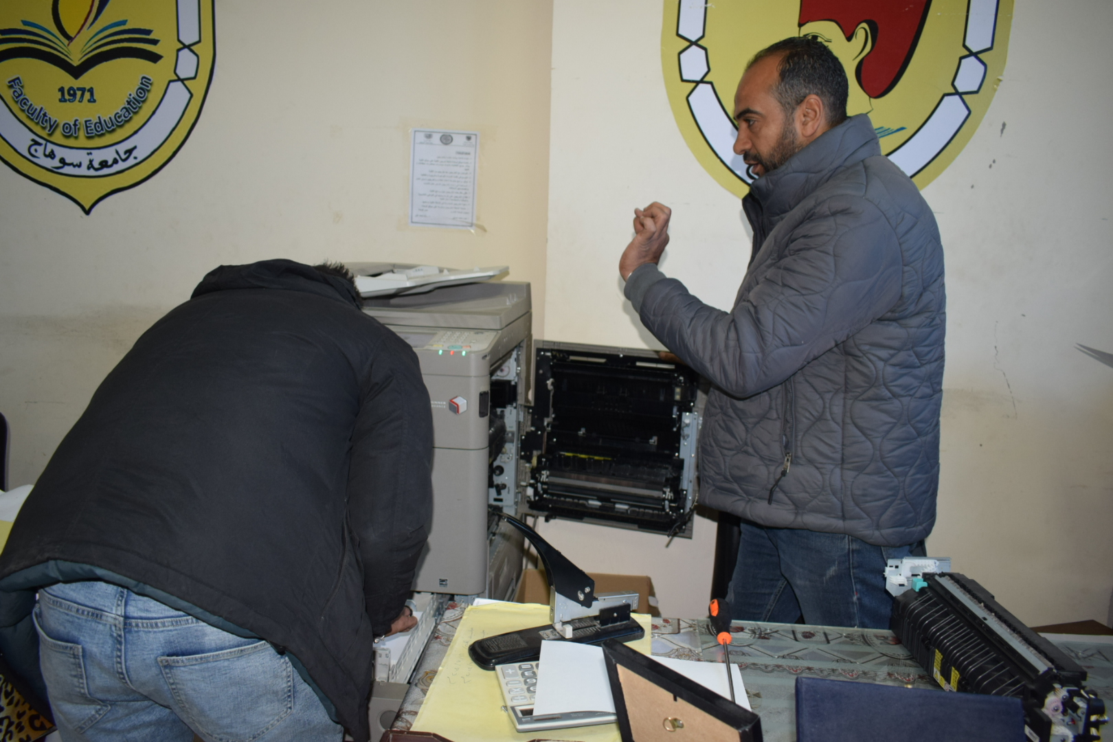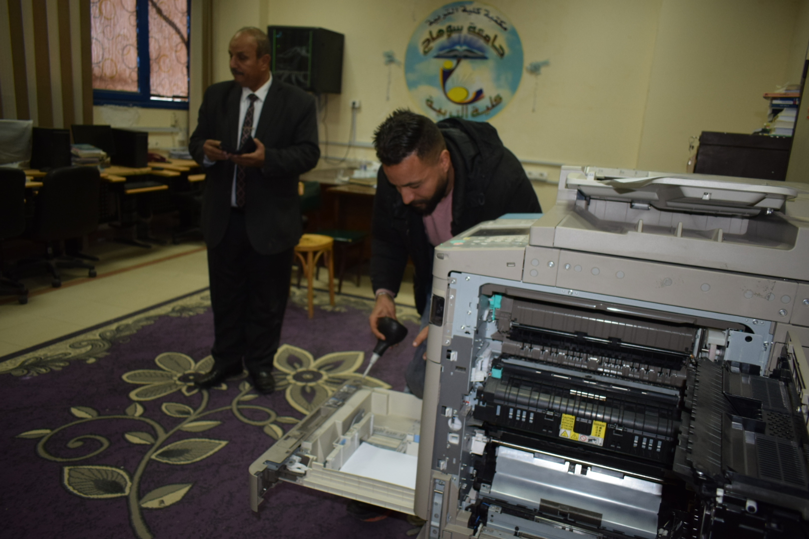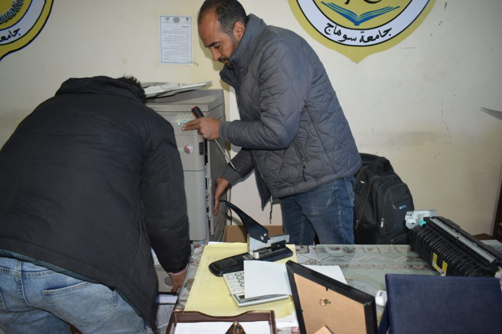 الرئيسية » أعمال صيانة ماكينات التصوير بالكليةأعمال صيانة ماكينات التصوير بالكليةبواسطة Hoda13 فبراير, 202513 فبراير, 2025أعمال صيانة ماكينات التصوير بالكلية قامت كلية التربية بقيادة السيد أ.د/ حسين طه “عميد الكلية” والسيدة أ/ هند عثمان علي “أمين عام الكلية” بتوفير لجنة فحص مكونة من فنيين من كلٍ من القاهرة وسوهاج وذلك لصيانة وإصلاح ماكينات التصوير بالكلية