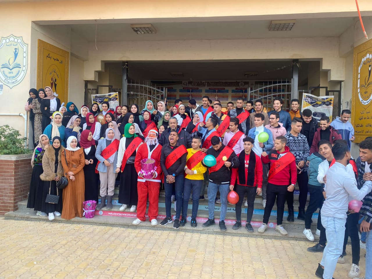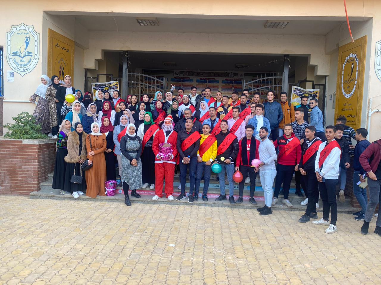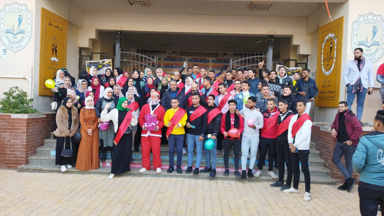 عمل اتحاد طلاب كلية التربية على آثاره البهجة بين الطلاب فى احتفالهم برأس السنة الميلادية التى تتزامن مع عوده الطلبه الدراسه ، و ذلك من خلال ارتداء أحدهم ملابس ” بابا نويل” و توزيع الحلوى و الشوكولا على الطلبه و اختتم اليوم بصوره تذكارية مع قيادات الكليه