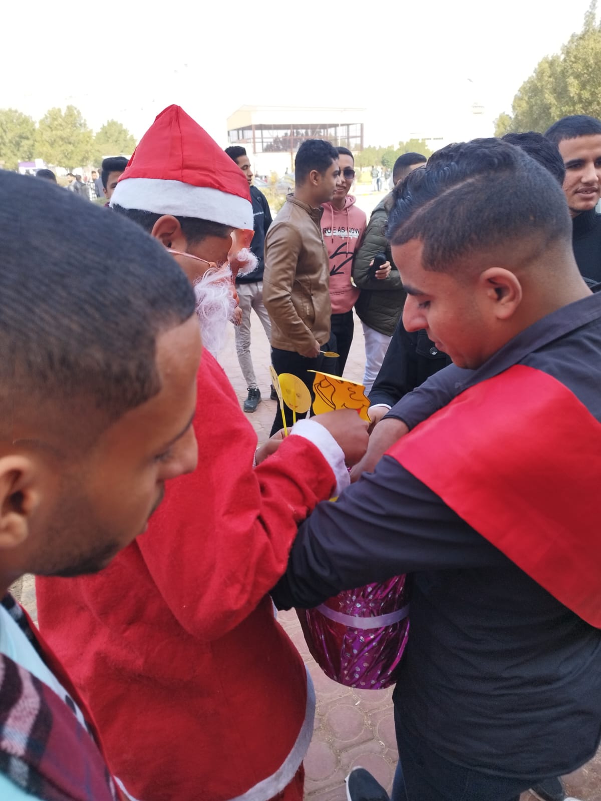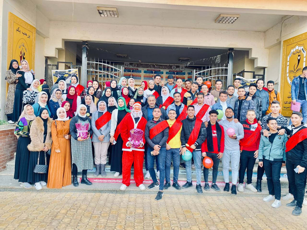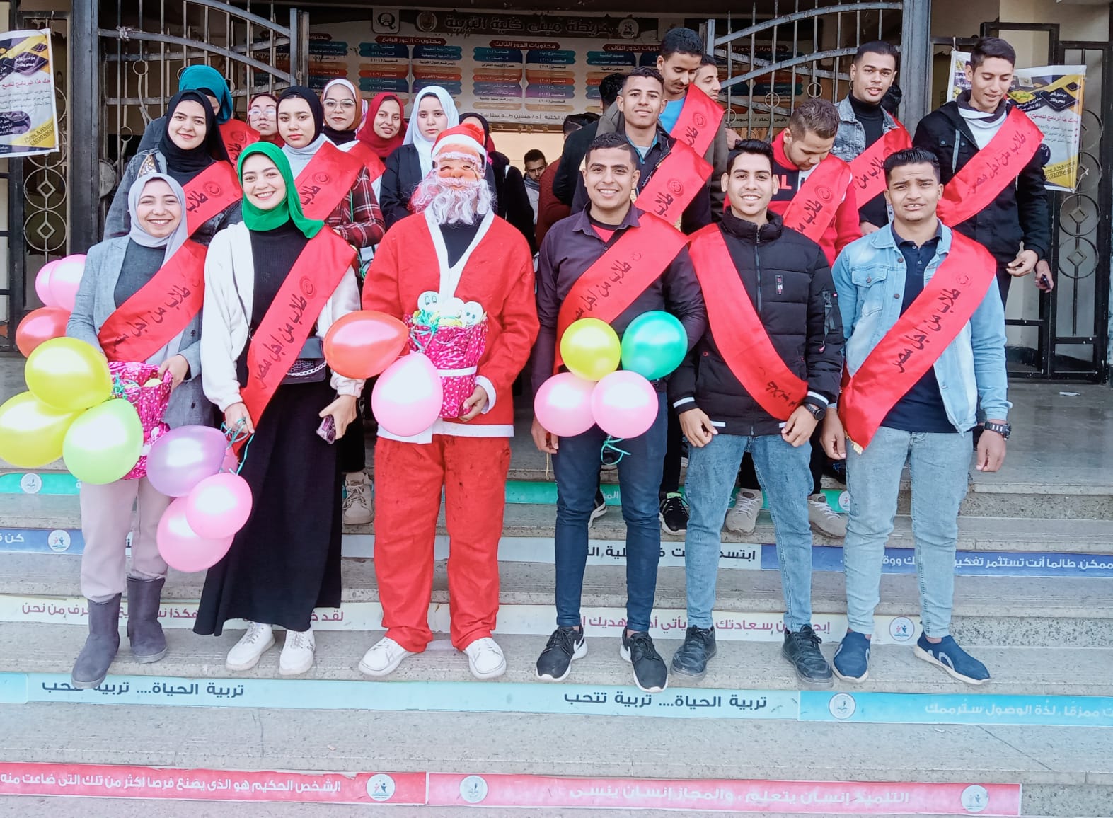 عمل اتحاد طلاب كلية التربية على آثاره البهجة بين الطلاب فى احتفالهم برأس السنة الميلادية التى تتزامن مع عوده الطلبه الدراسه ، و ذلك من خلال ارتداء أحدهم ملابس ” بابا نويل” و توزيع الحلوى و الشوكولا على الطلبه و اختتم اليوم بصوره تذكارية مع قيادات الكليه
