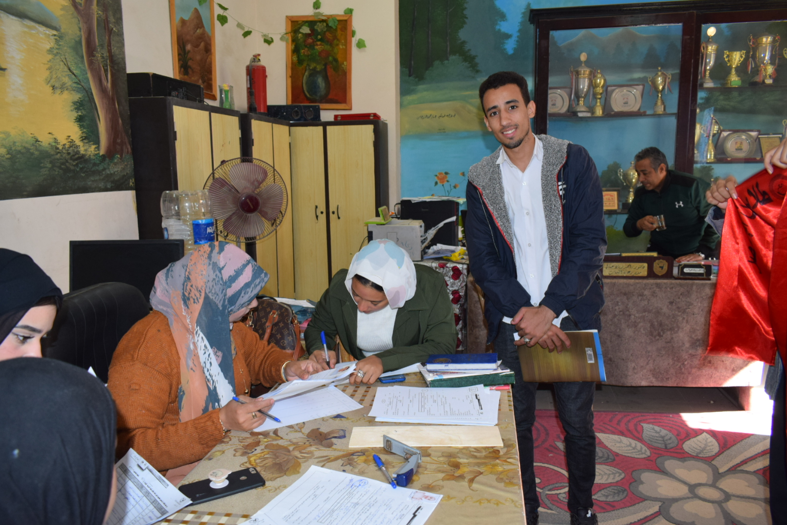 فقام بعمل تعريف لـ اماكن و لجان الإمتحانات و كتابه إسم الشعبه و الفرقة و رقم الجلوس على كل مكان و تنزيلهم على صفحه الاتحاد على الفيس بوك