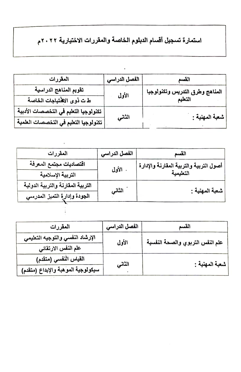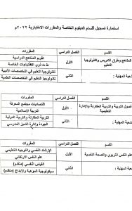 الرئيسية » إستمارة تسجيل أقسام الدبلوم الخاصة والمقررات الإختياريةإستمارة تسجيل أقسام الدبلوم الخاصة والمقررات الإختياريةبواسطة Hoda23 أكتوبر, 2022