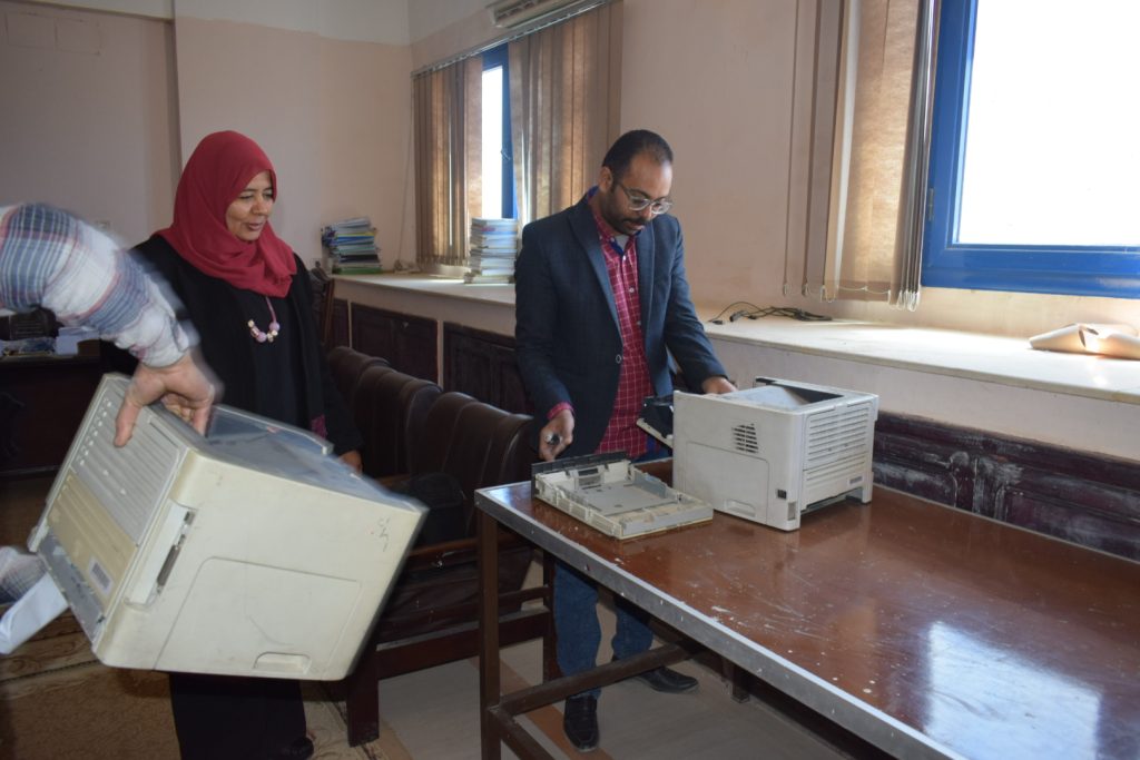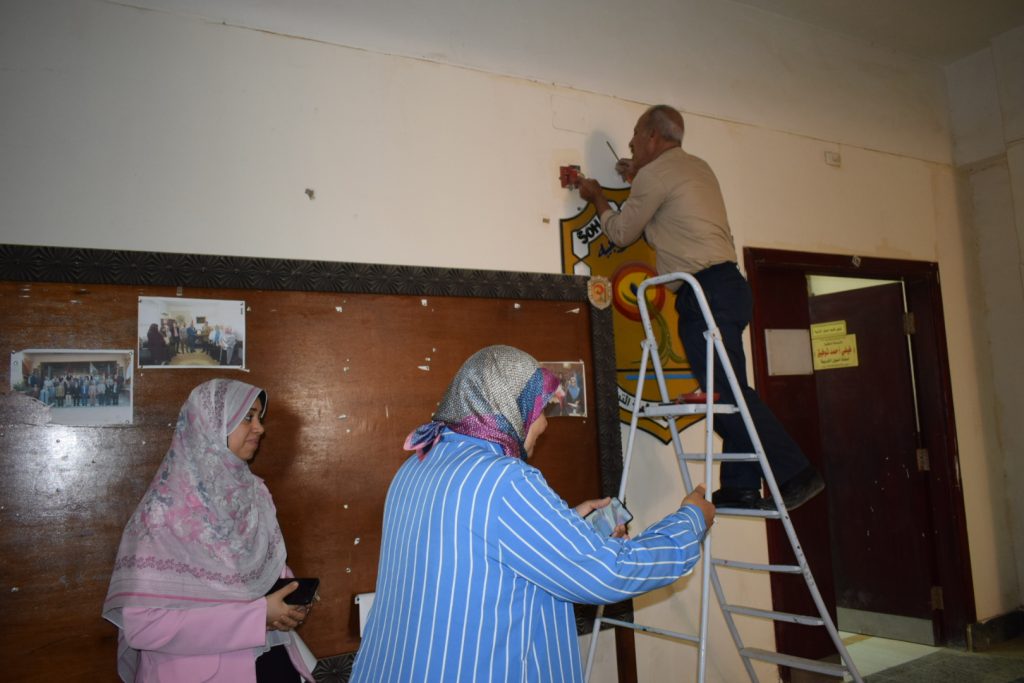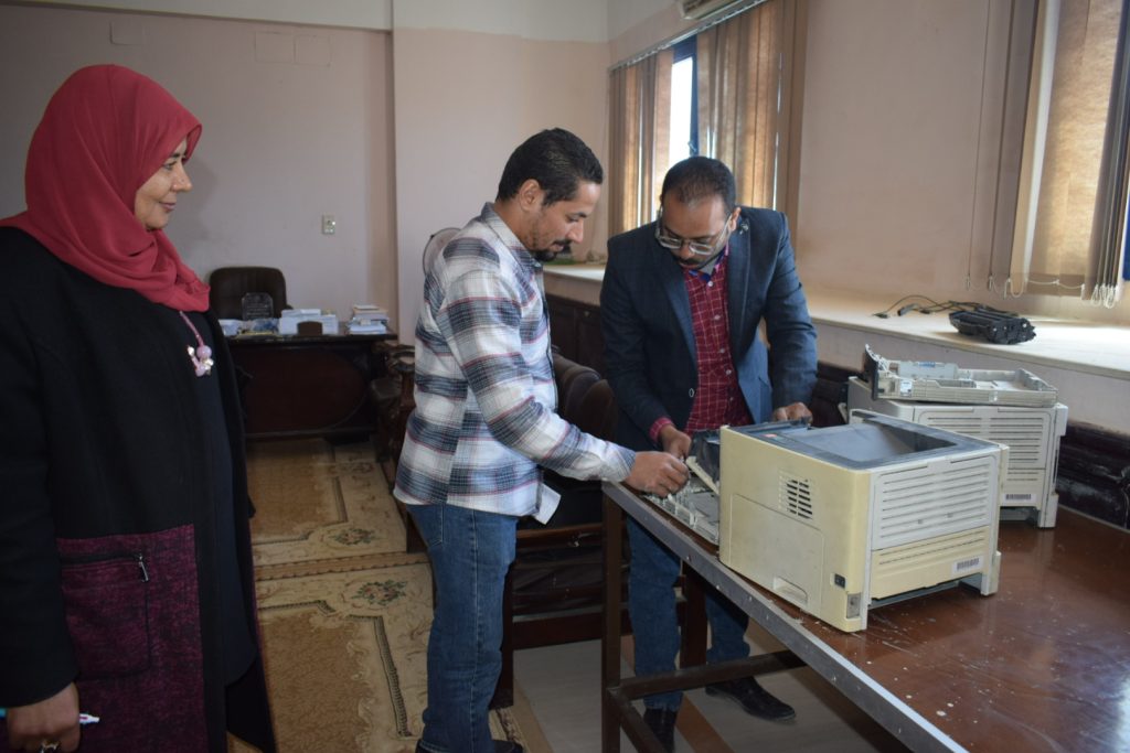 بعمل إصلاحات شاملة للكلية تشمل طفايات الحريق والطابعات وأجهزة الإنذار وشاشات العرض datashow وكذلك تشجير حول الكلية