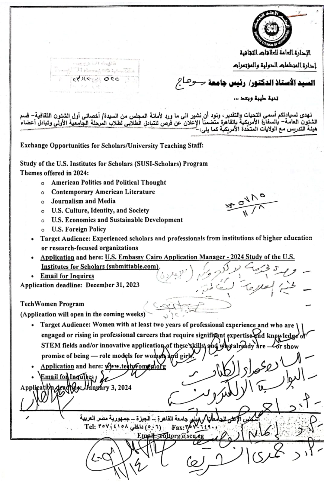إعلان عن فرص التبادل الطلابي لطلاب المرحلة الجامعية الأولي وتبادل أعضاء هيئة التدريس مع الولايات المتحدة الأمريكية