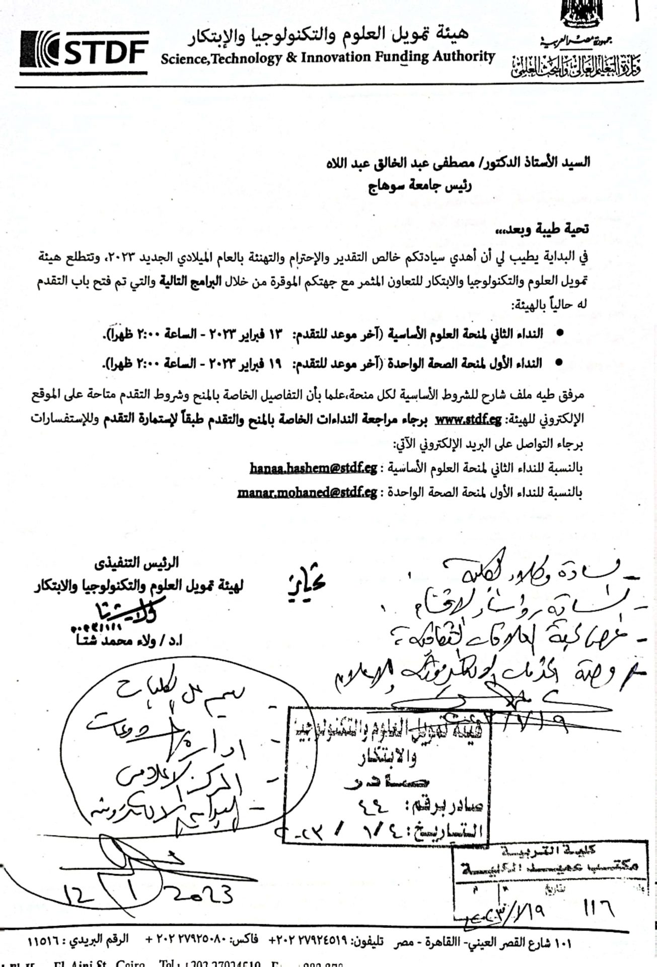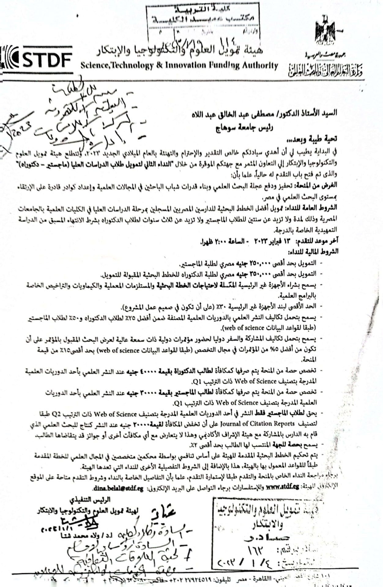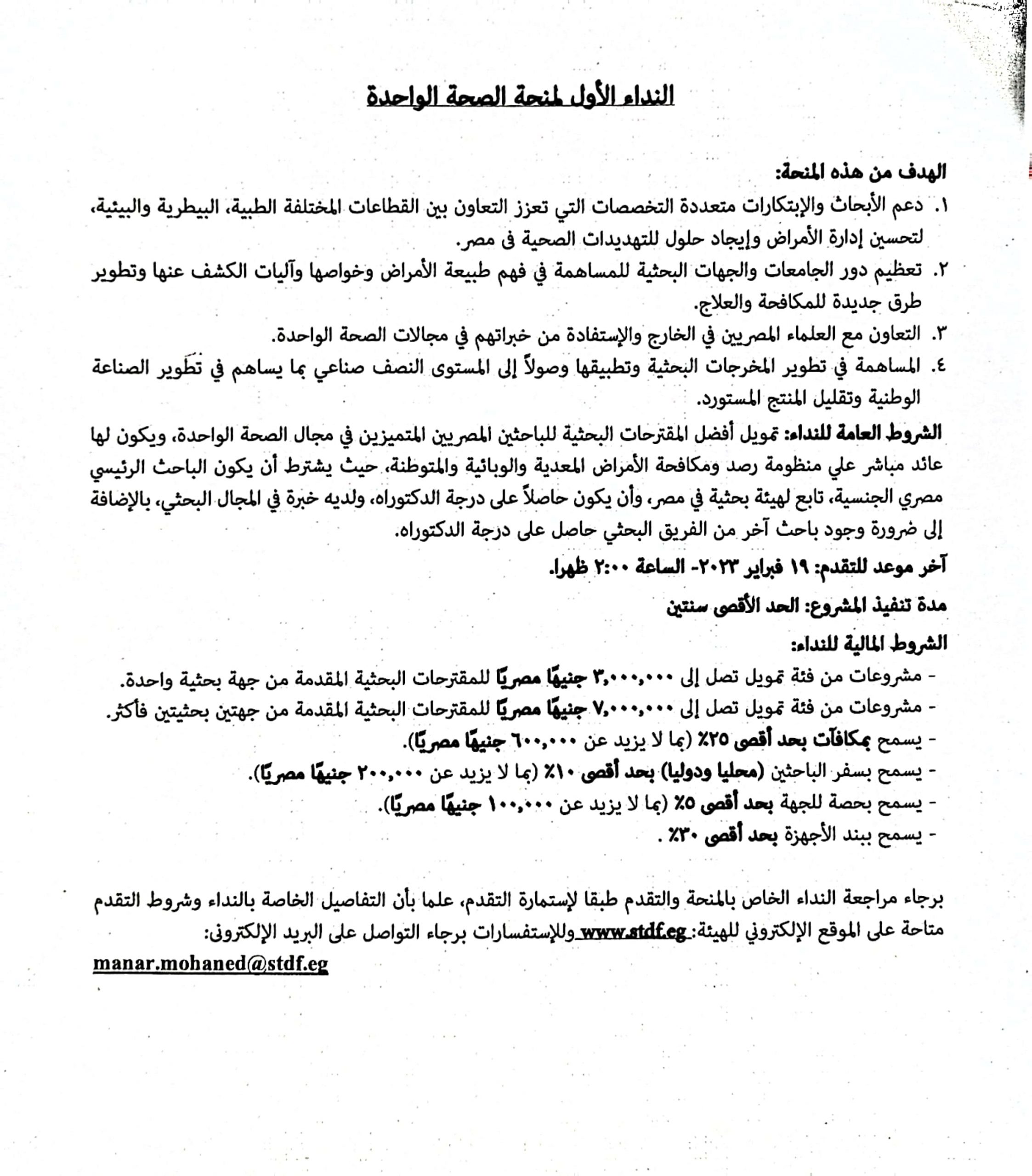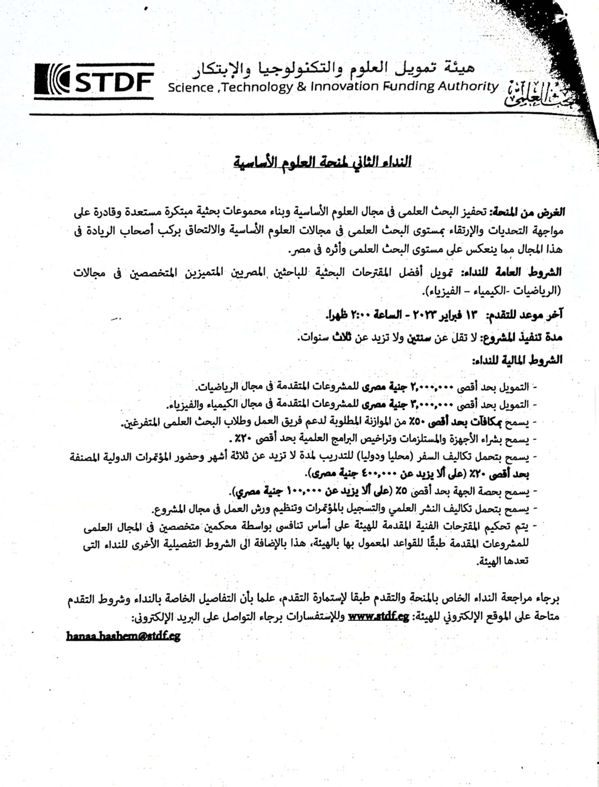 إعلان عن منح خاصة بهيئة تمويل العلوم والتكنولوجيا والإبتكار