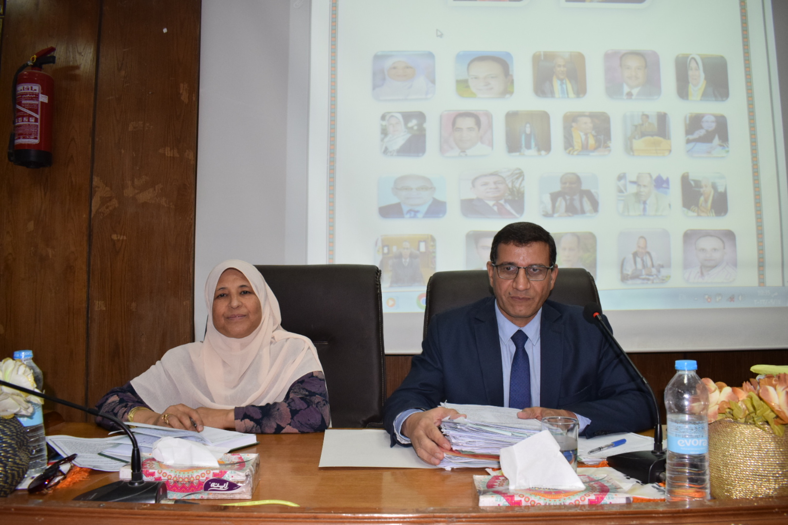 بحضور السادة أعضاء مجلس الكلية برئاسة السيد أ.د/ عماد صومائيل وهبه (القائم بعمل عميد الكلية)