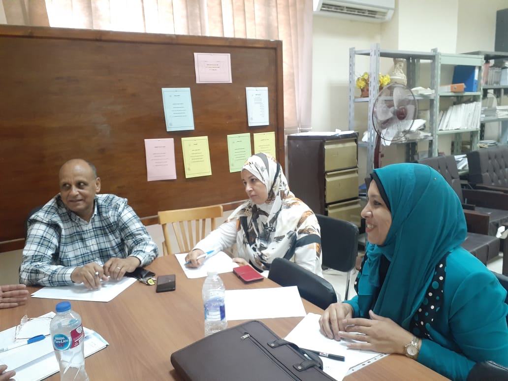 وذلك لمناقشة بعض الاجراءات الخاصة باستكمال تجهيزات وحدة الأمن والسلامة لإدارة الازمات بالكلية ضمان الجودة بالكلية.