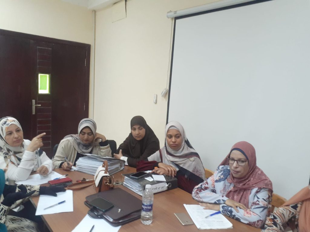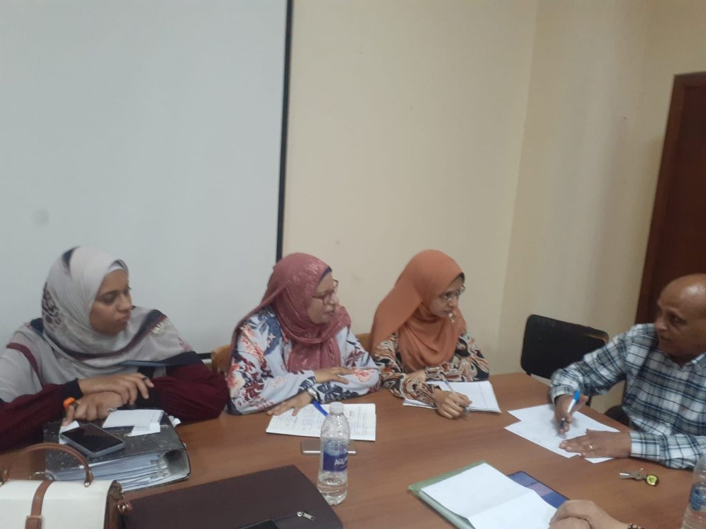 مع السادة أعضاء المعيار السابع (ضمان الجودة وتقييم البرنامج) للبرامج الأربعة، وذلك للوقوف على أهم الصعوبات التى تواجه أعضاء المعيار للانتهاء من الملف وتسليمه.