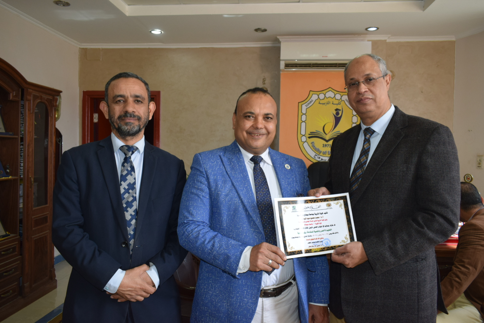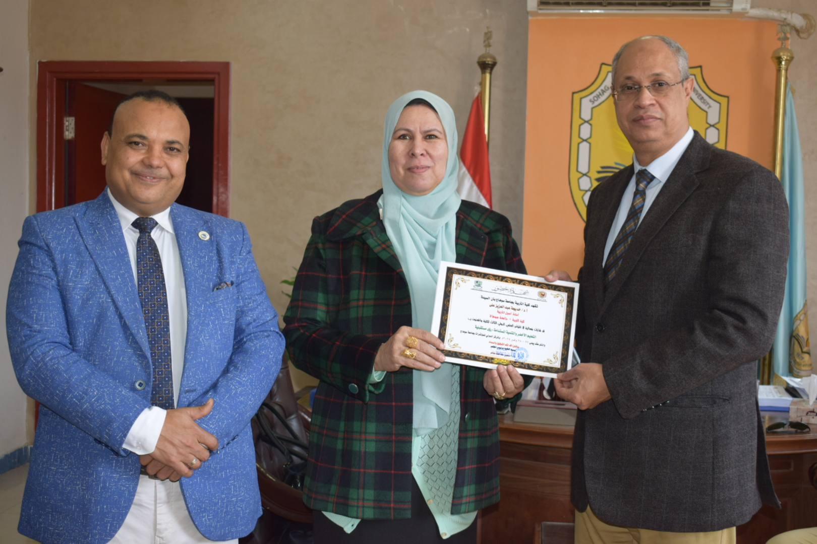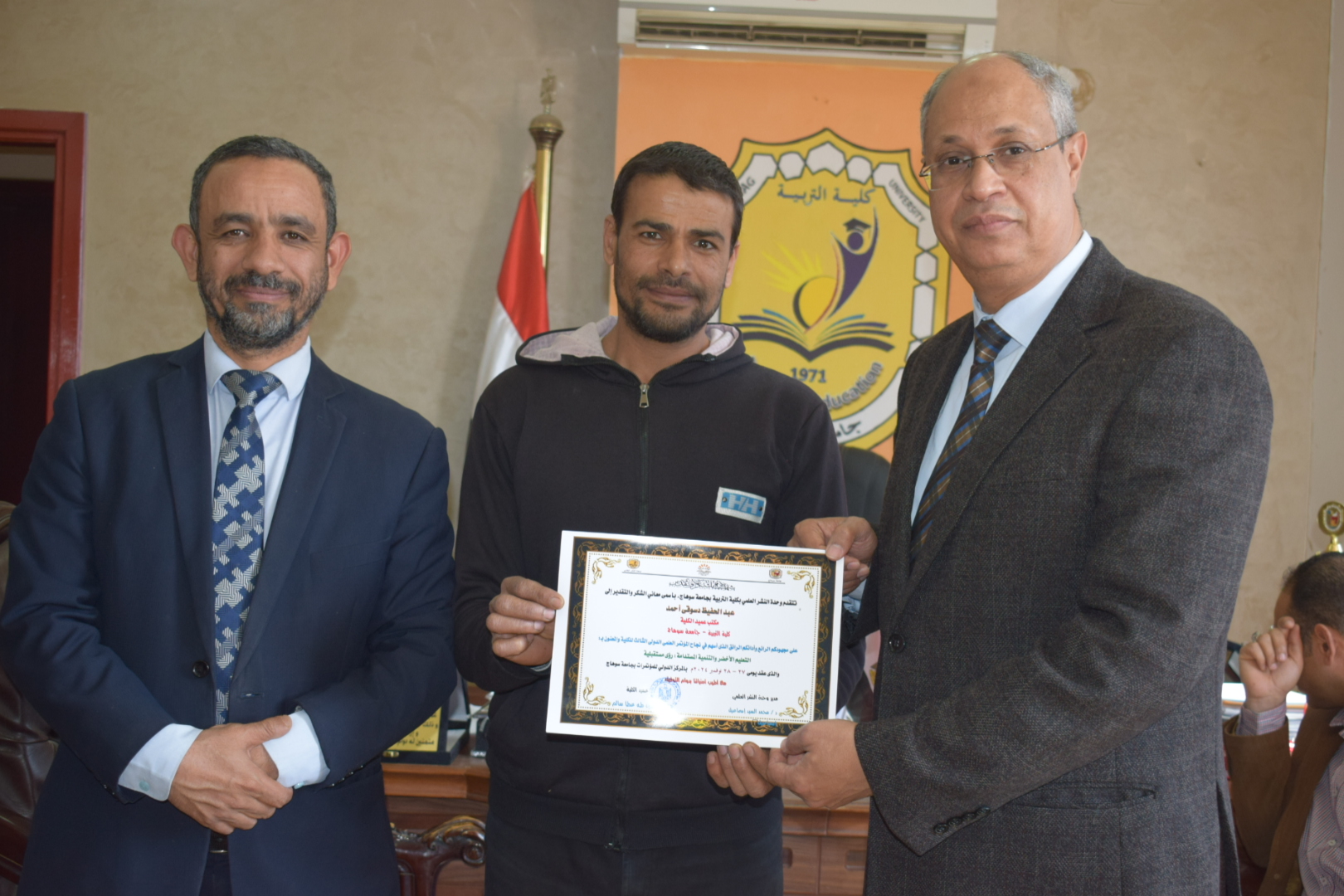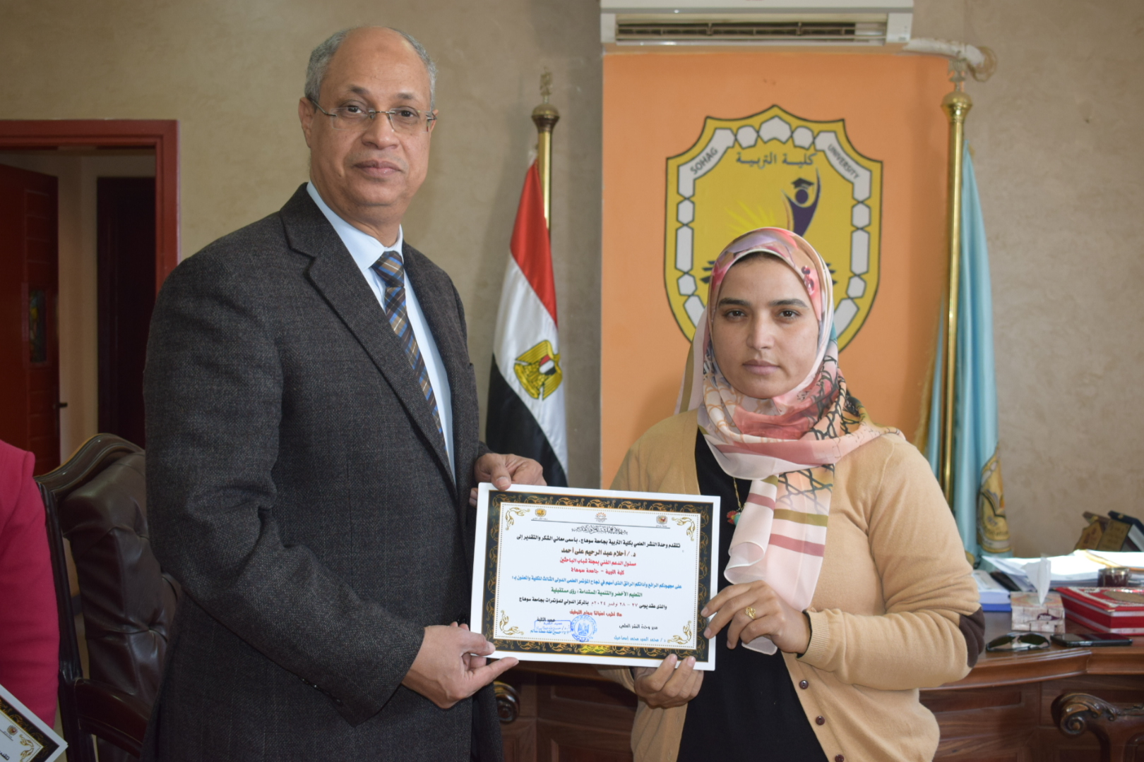 قام السيد أ.د/ حسين طه “عميد الكلية” بتوزيع شهادات حضور المؤتمر الدولي الثالث لكلية التربية بسوهاج بعنوان “التعليم الأخضر والتنمية المستدامة”