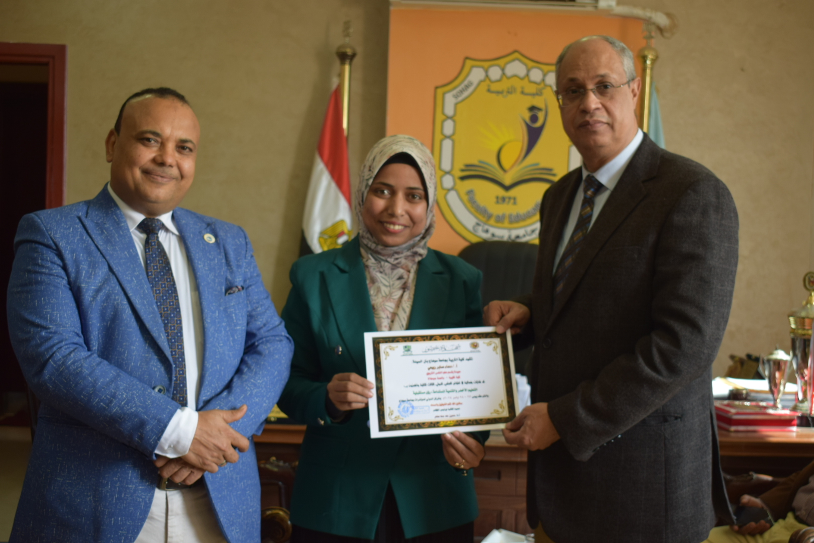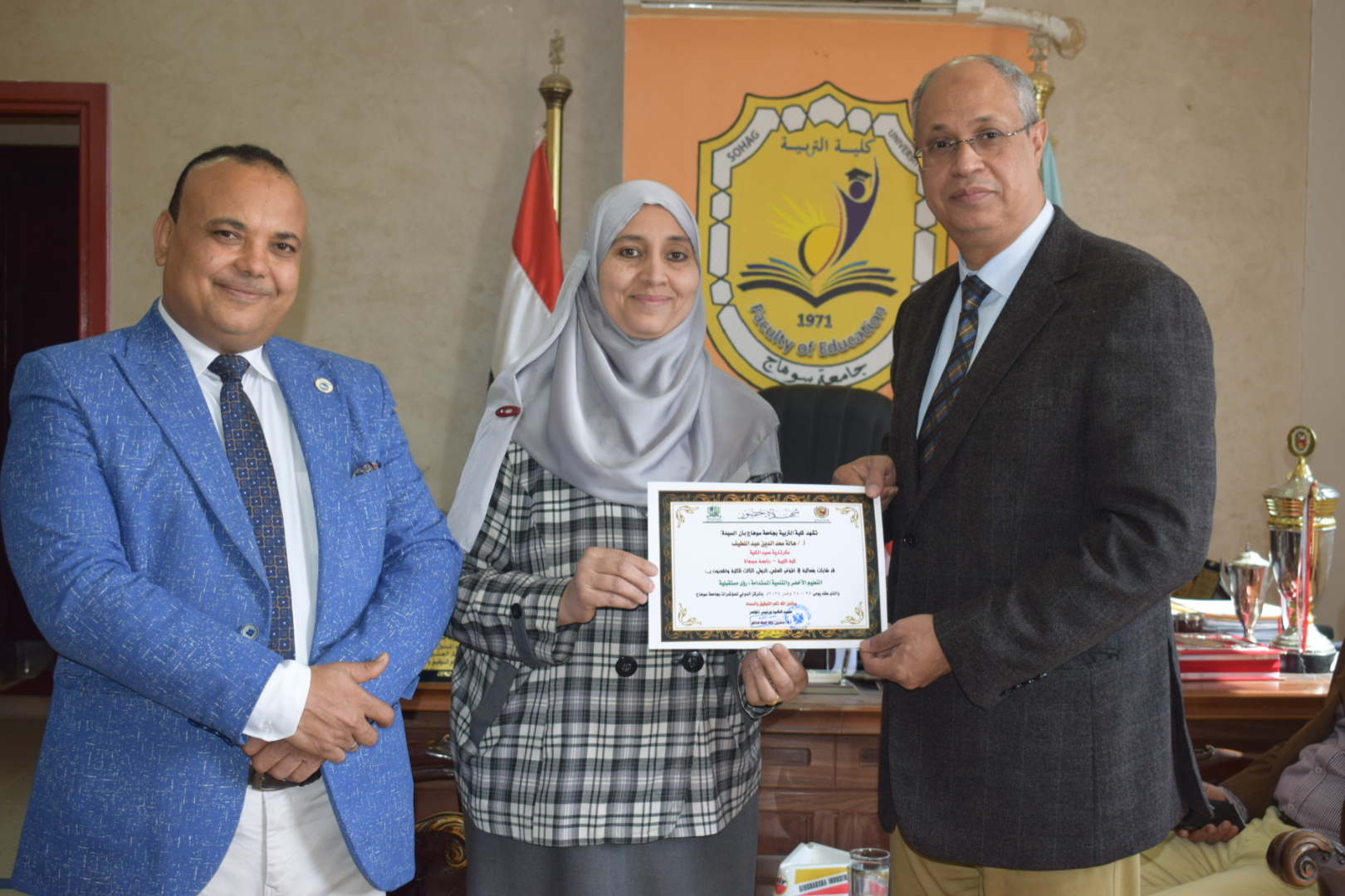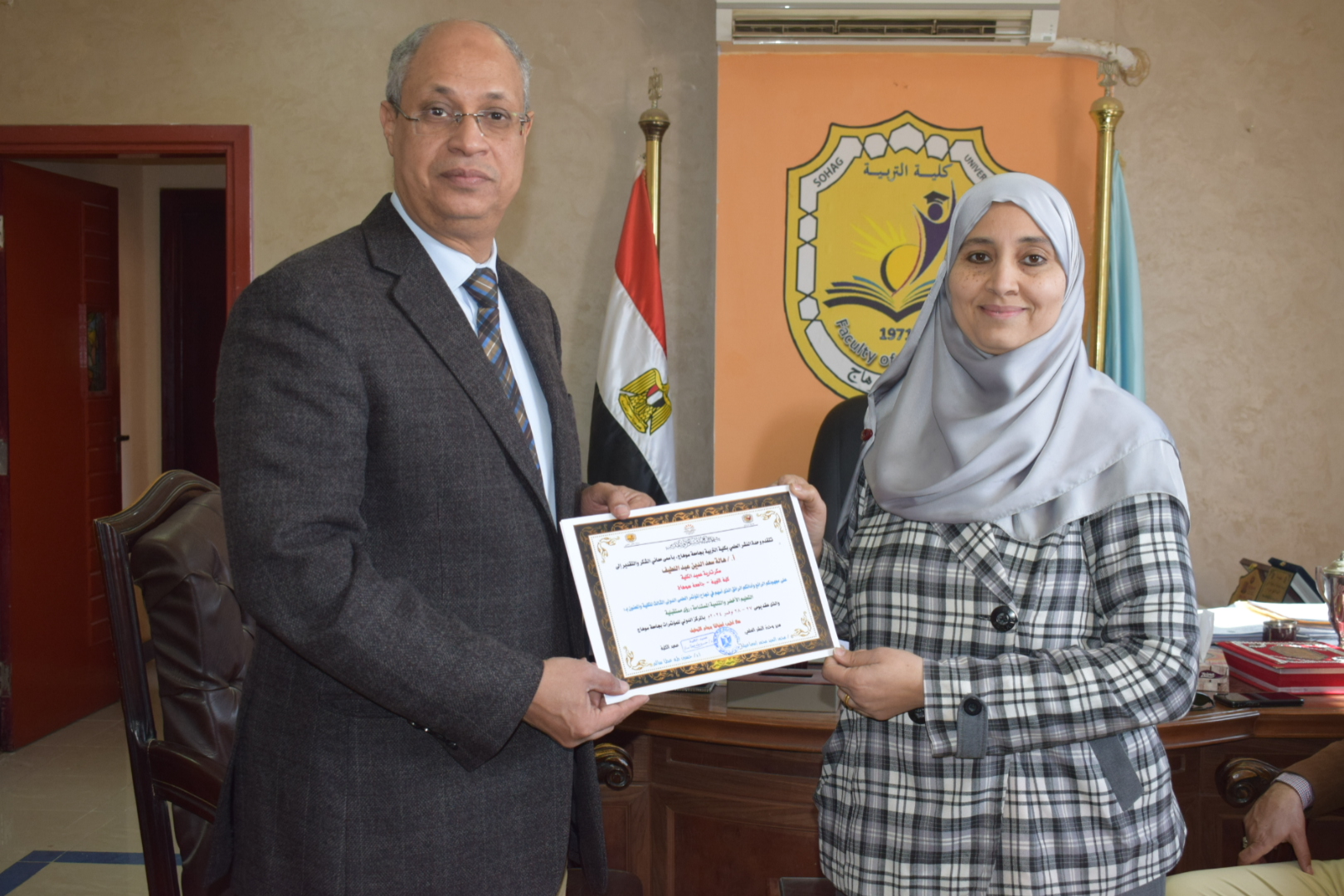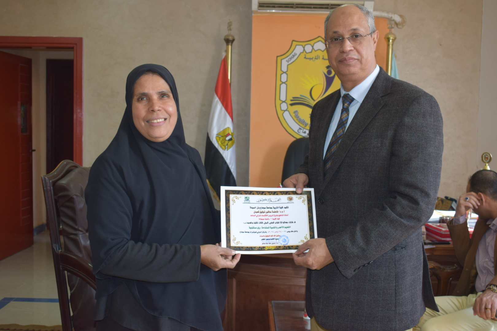 قام السيد أ.د/ حسين طه “عميد الكلية” بتوزيع شهادات حضور المؤتمر الدولي الثالث لكلية التربية بسوهاج بعنوان “التعليم الأخضر والتنمية المستدامة”