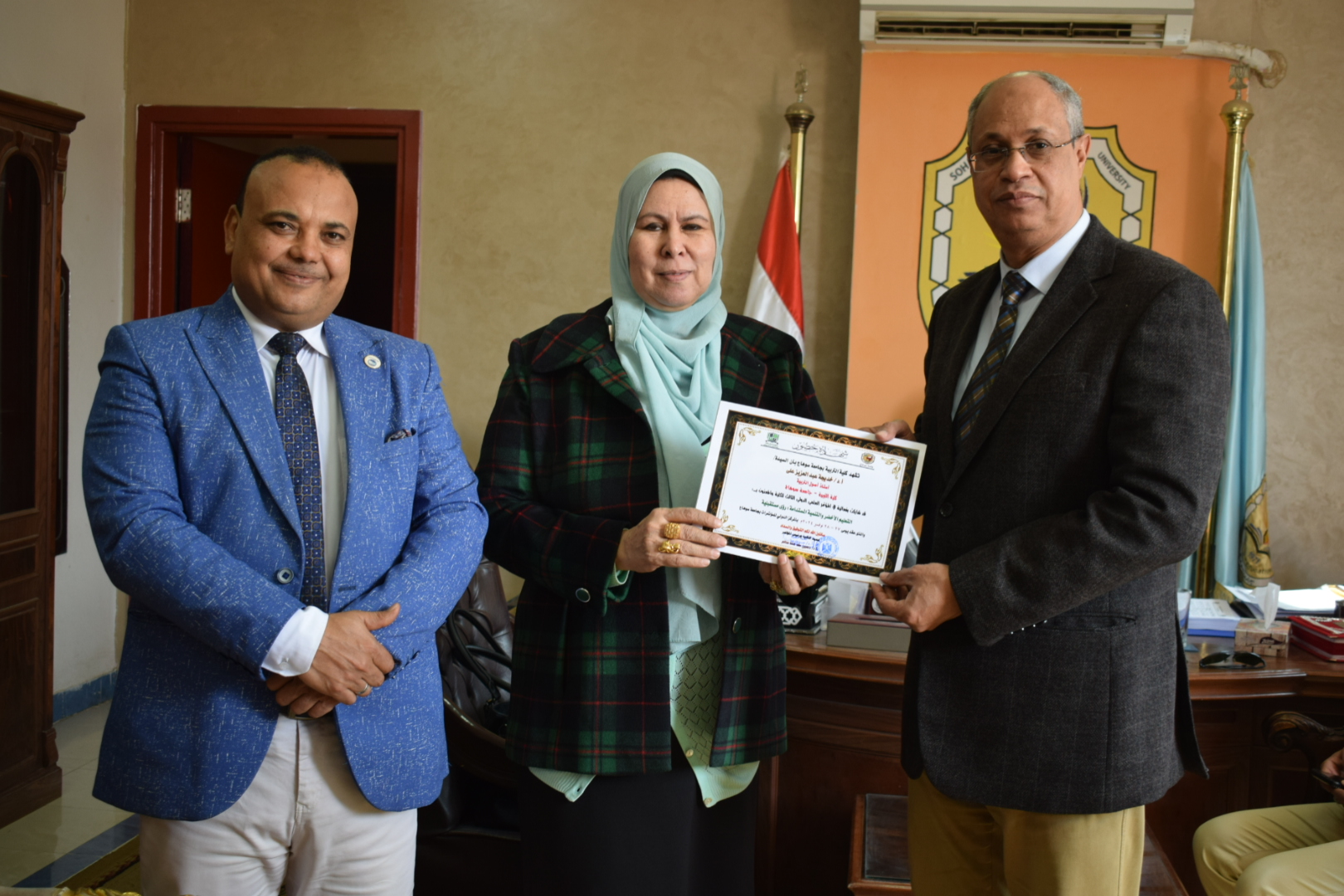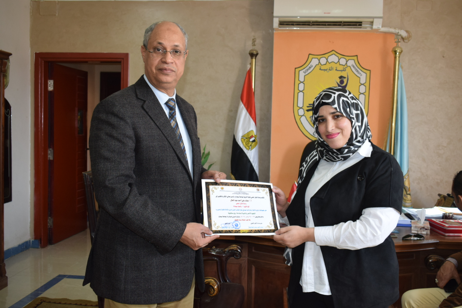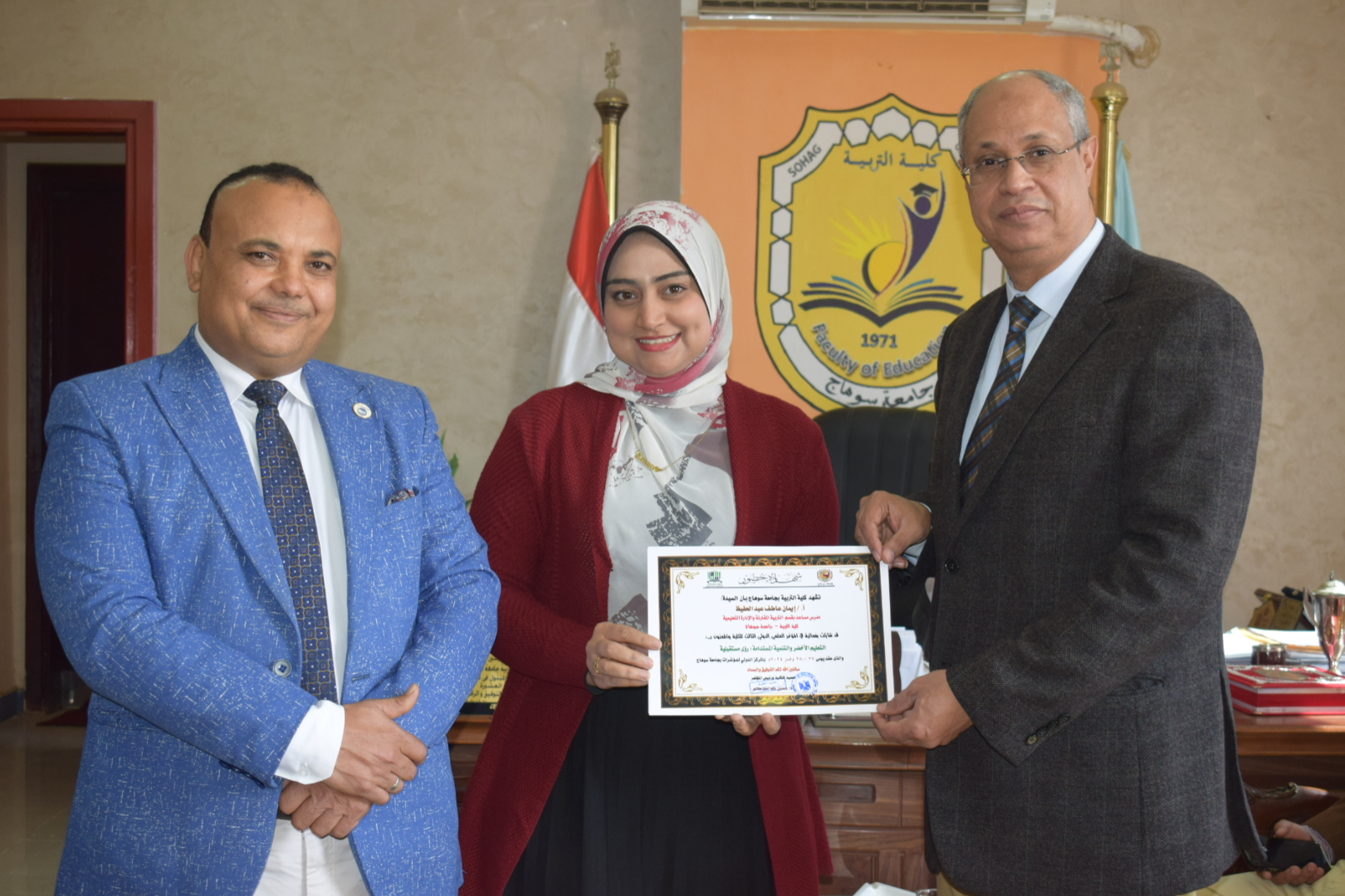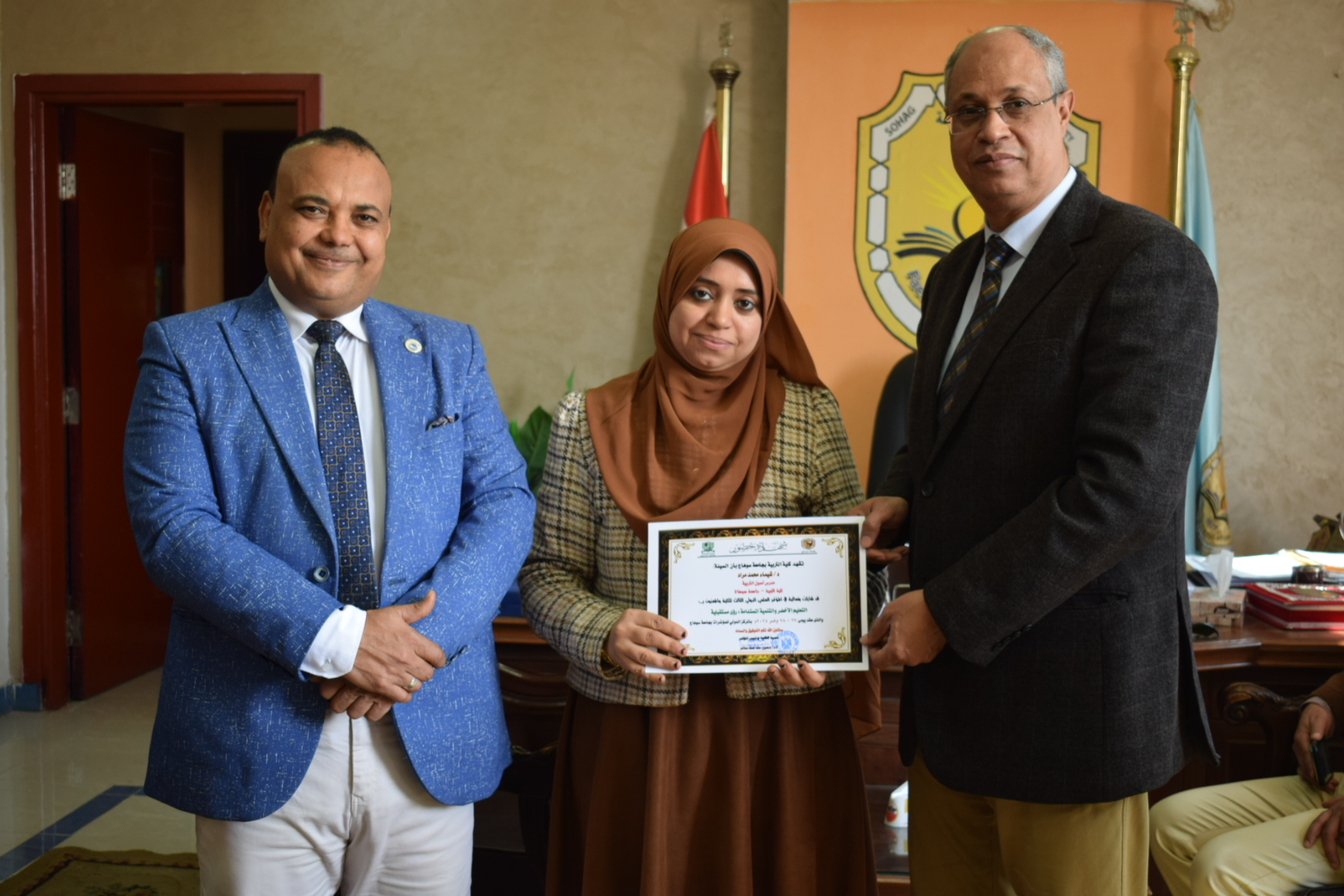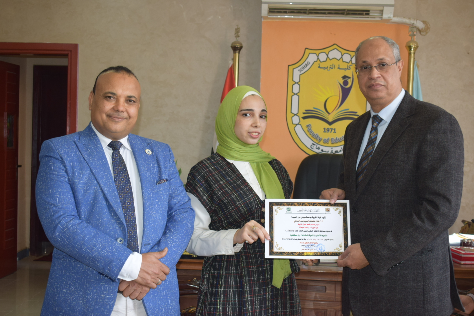 قام السيد أ.د/ حسين طه “عميد الكلية” بتوزيع شهادات حضور المؤتمر الدولي الثالث لكلية التربية بسوهاج بعنوان “التعليم الأخضر والتنمية المستدامة”