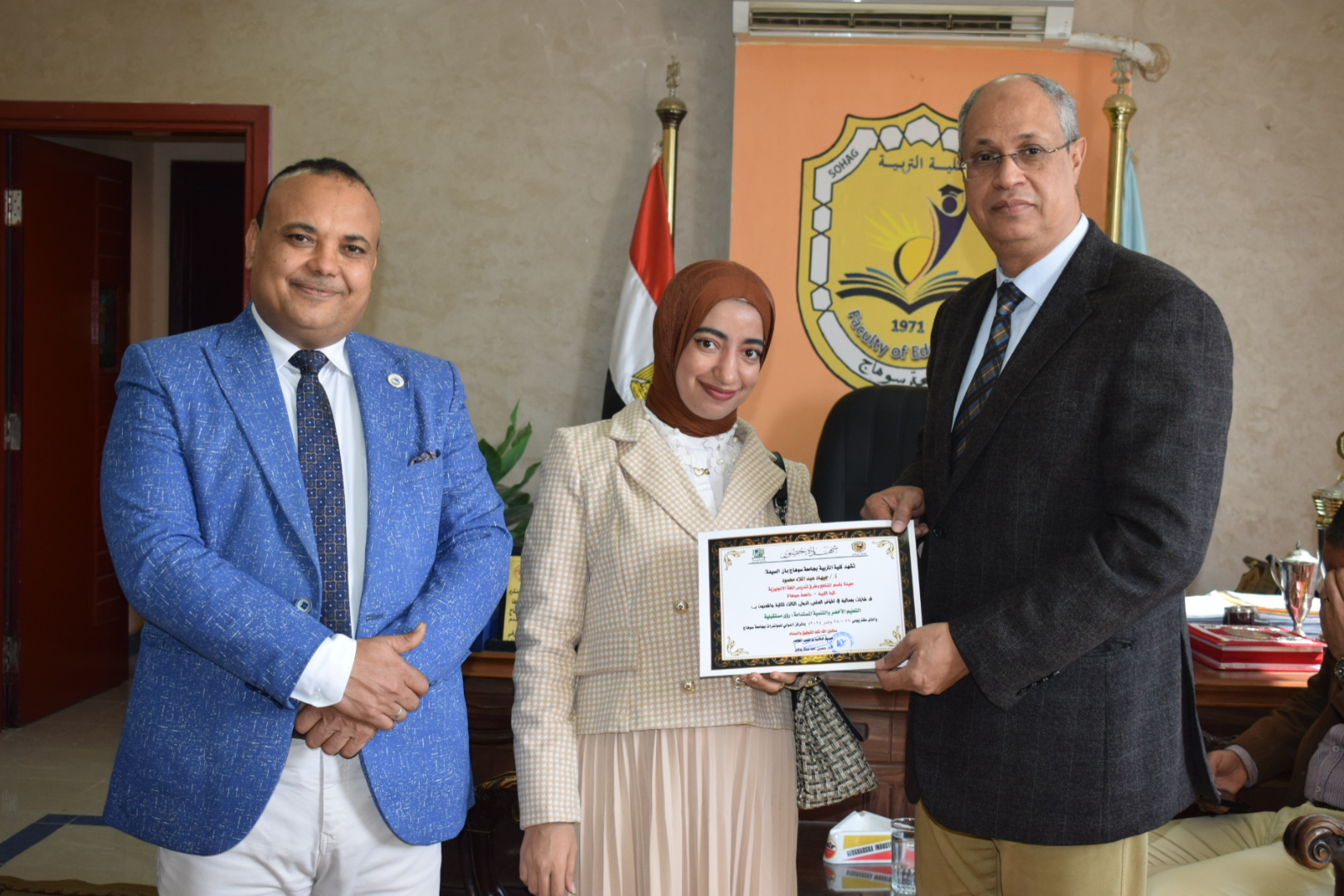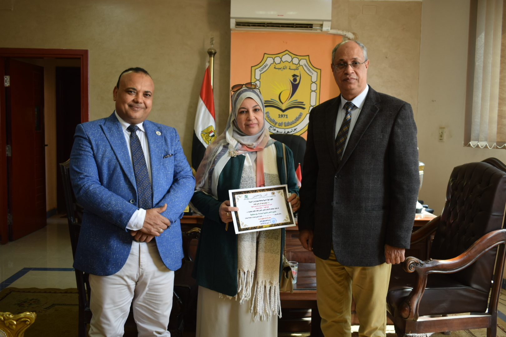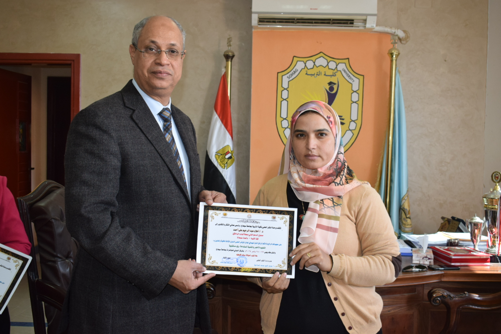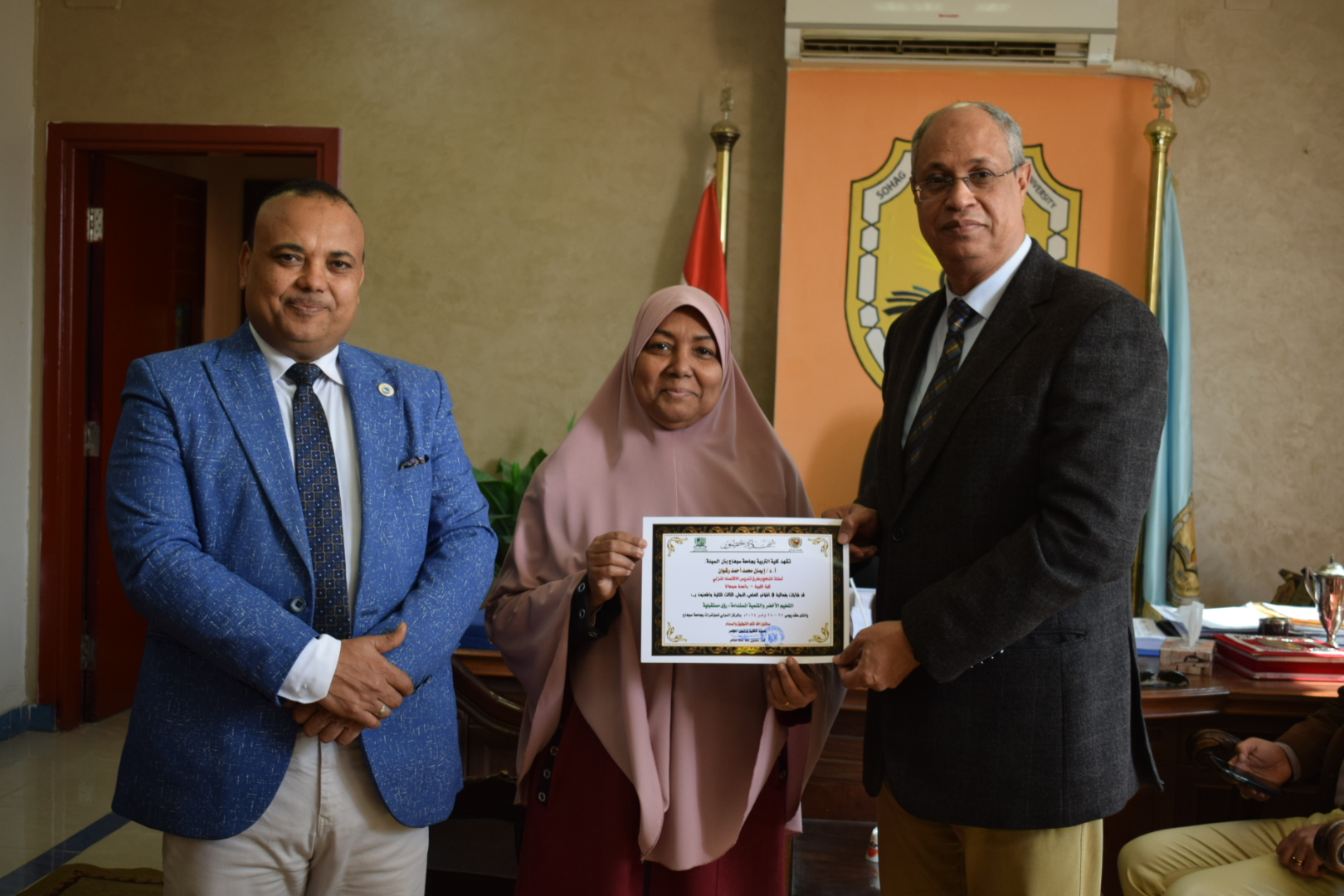 قام السيد أ.د/ حسين طه “عميد الكلية” بتوزيع شهادات حضور المؤتمر الدولي الثالث لكلية التربية بسوهاج بعنوان “التعليم الأخضر والتنمية المستدامة”