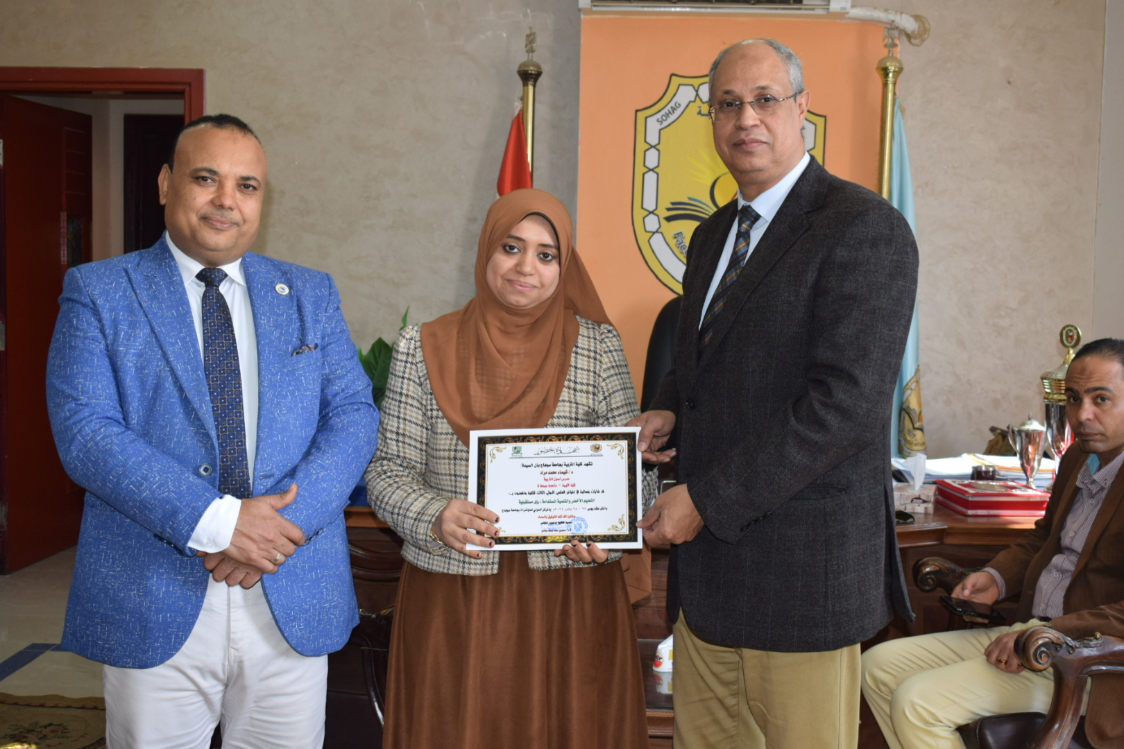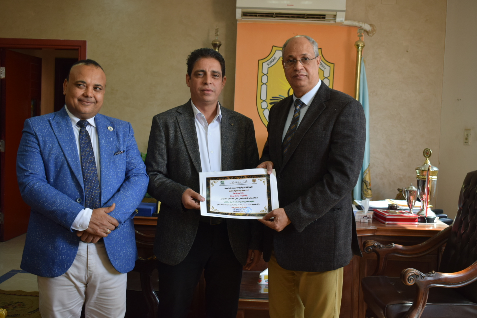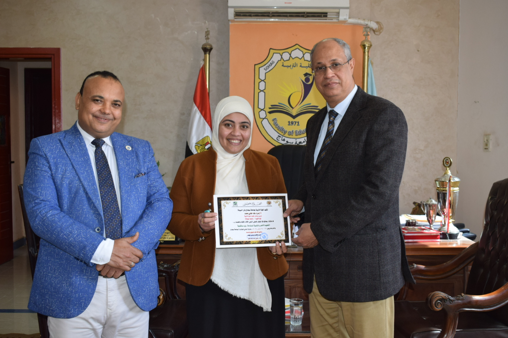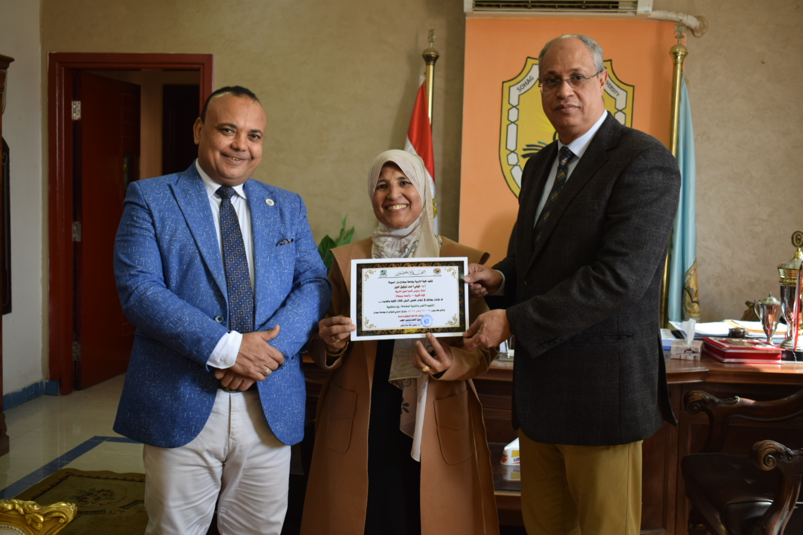 قام السيد أ.د/ حسين طه “عميد الكلية” بتوزيع شهادات حضور المؤتمر الدولي الثالث لكلية التربية بسوهاج بعنوان “التعليم الأخضر والتنمية المستدامة”