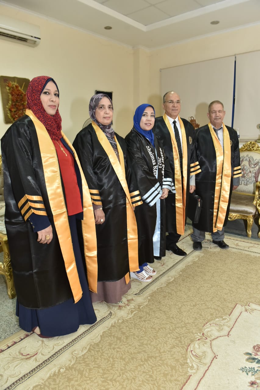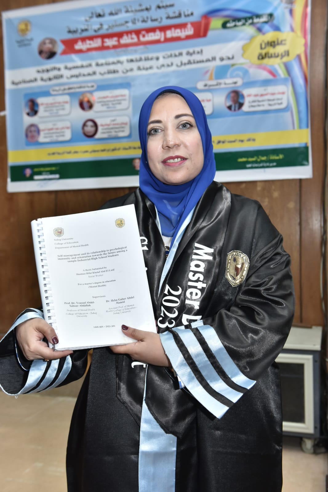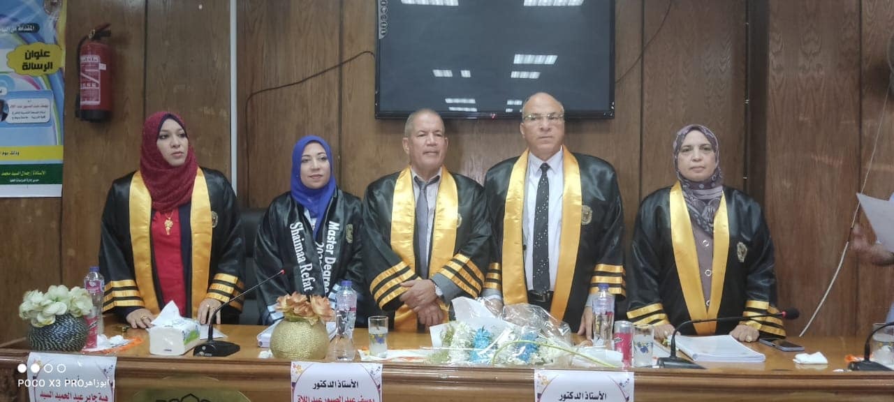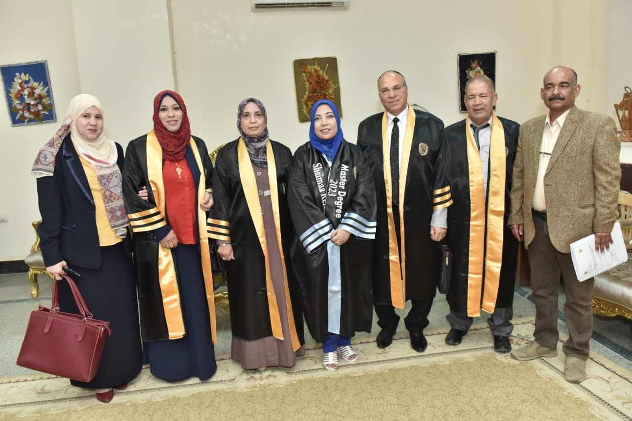 تمت مناقشة رسالة ماجستير (قسم الصحة النفسية) للباحثة المتميزة/ شيماء رفعت خلف “من الخارج”