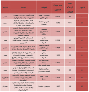 هذا وقد جاء فى التقرير ذاته أن علماء مصر حاذوا المراكز الثمانية الأولى من أصل عشرة مراكز فى أعلى الابحاث الاكثر تحميلًا حسب المؤلف.