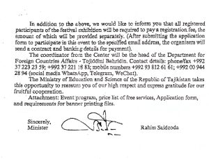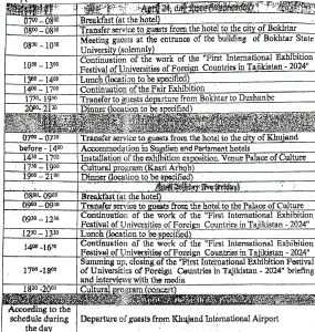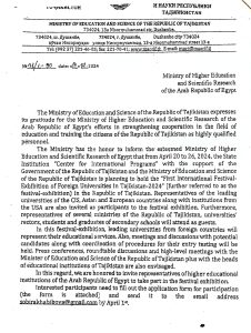 والمقرر تنظيمه خلال الفترة من 20-26 ابريل 2024م في مدينة دوشنبه