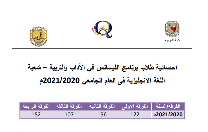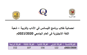 الهيكل التنظيمى لبرنامج الليسانس فى الآداب والتربية – شعبة اللغة الانجليزية – 2020 – 2021