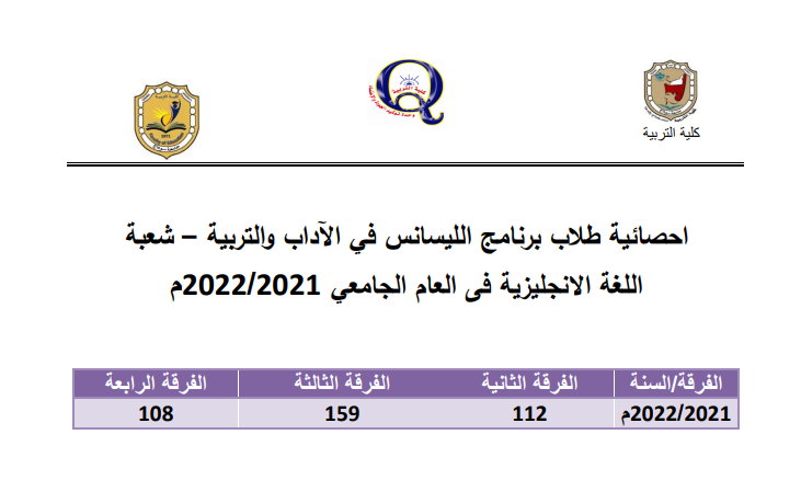 الهيكل التنظيمى لبرنامج الليسانس فى الآداب والتربية – شعبة اللغة الانجليزية – 2021 – 2022