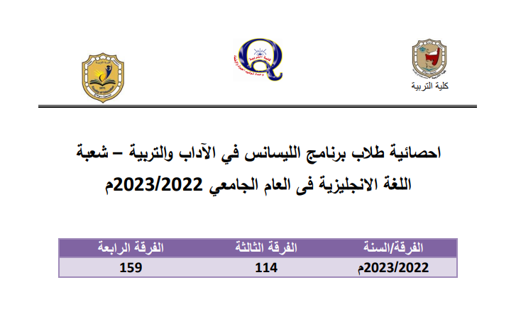 الهيكل التنظيمى لبرنامج الليسانس فى الآداب والتربية – شعبة اللغة الانجليزية – 2022 – 2023