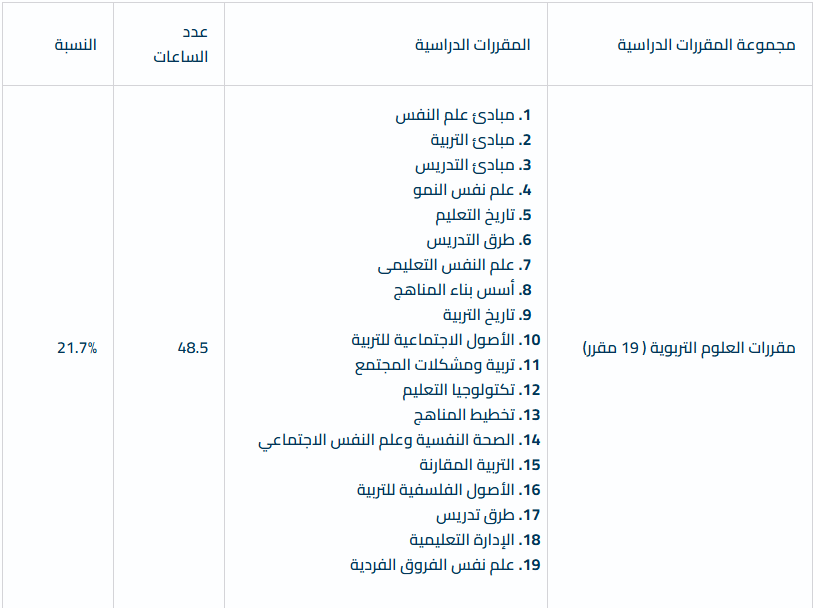 5-تزويد الخريج بالقيم المجتمعية والثقافية والاخلاقية لمهنة التعليم.