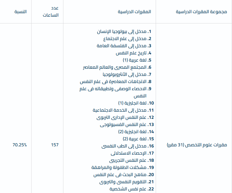 أما عن برنامج الليسانس في الآداب والتربية شعبة علم النفس …….