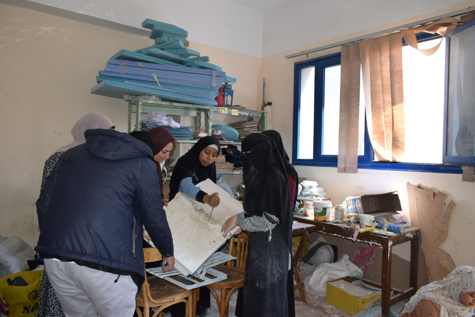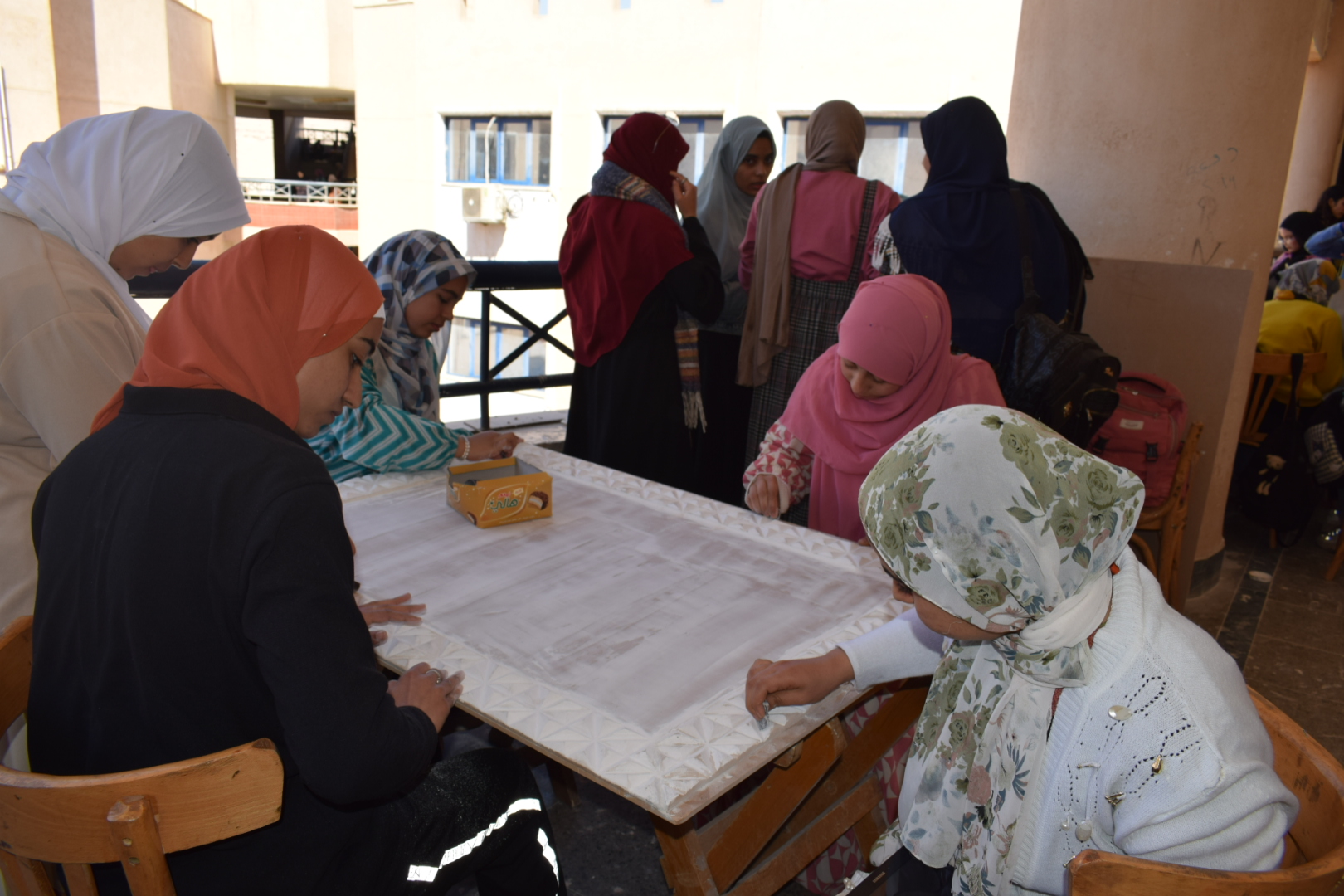 حيث قامت وحدة الجودة بجولة تفقدية لمقر التربية الفنية أثناء إعداد تلك التجهيزات والأعمال الفنية بأعمال طلاب الفرقة الثانية تعليم أساسي والفرقة الأولي شعبة الطفولة بقيادة الأستاذ/ محمد الشاذلي