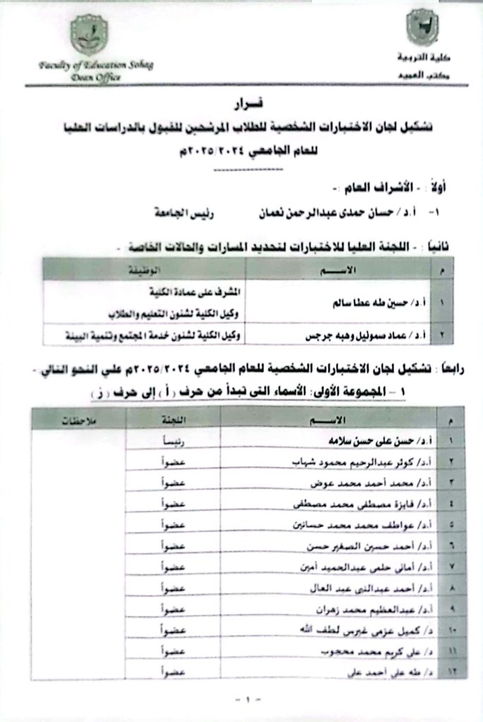 الرئيسية » تشكيل لجان الاختبارات الشخصية للطلاب المرشحين للقبول بالدراسات العلياتشكيل لجان الاختبارات الشخصية للطلاب المرشحين للقبول بالدراسات العليابواسطة Hoda7 أكتوبر, 20247 أكتوبر, 2024تشكيل لجان الاختبارات الشخصية للطلاب المرشحين للقبول بالدراسات العليا للعام الجامعي 2024 / 2025م