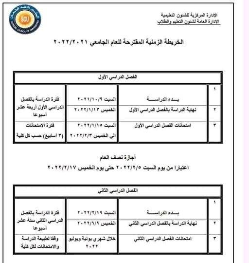 الخريطة الزمنية للفصل الدراسي الثاني للعام الدراسي 2022/2021م :