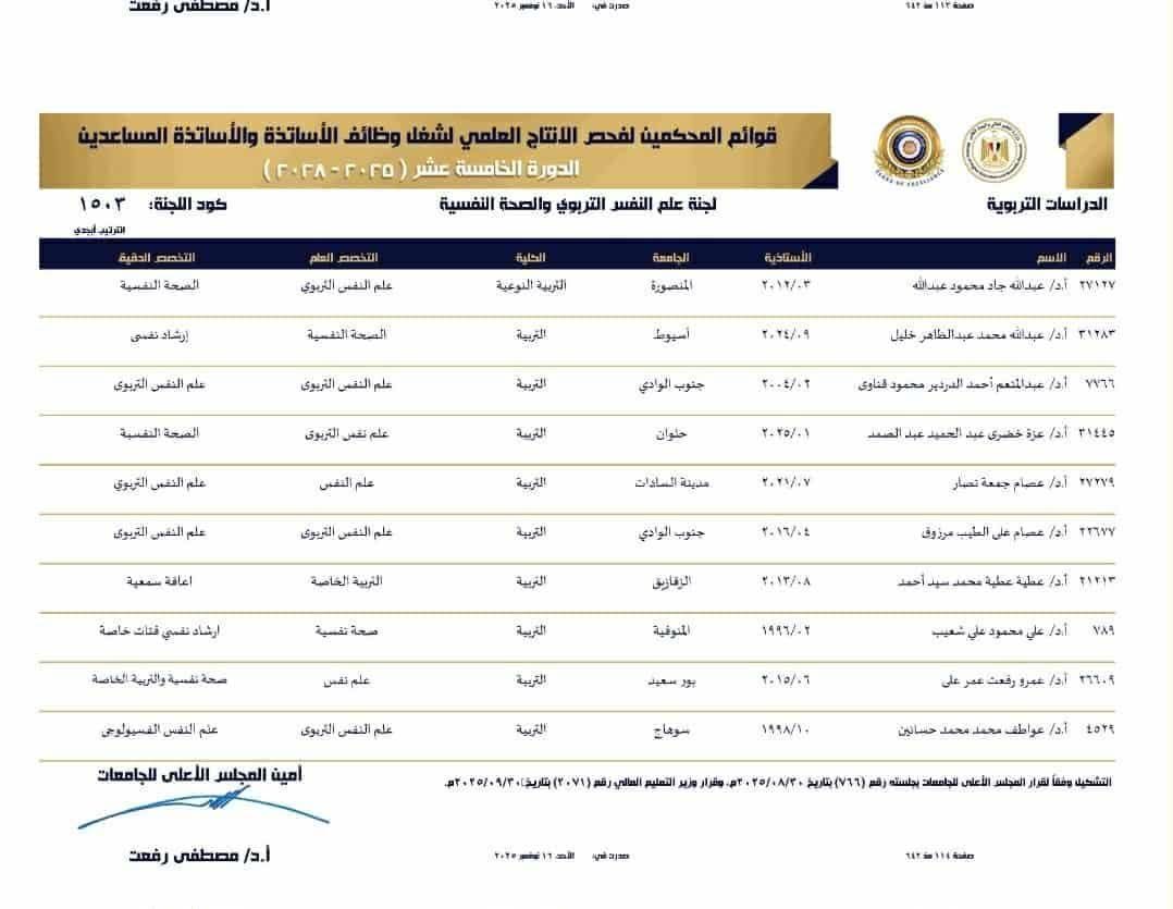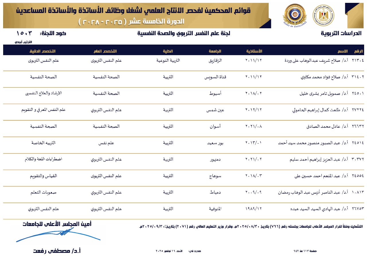 وبالإنابة عن أعضاء قسم علم النفس بكلية التربية – جامعة سوهاج، بأسمى آيات التهاني والتبريكات إلى: