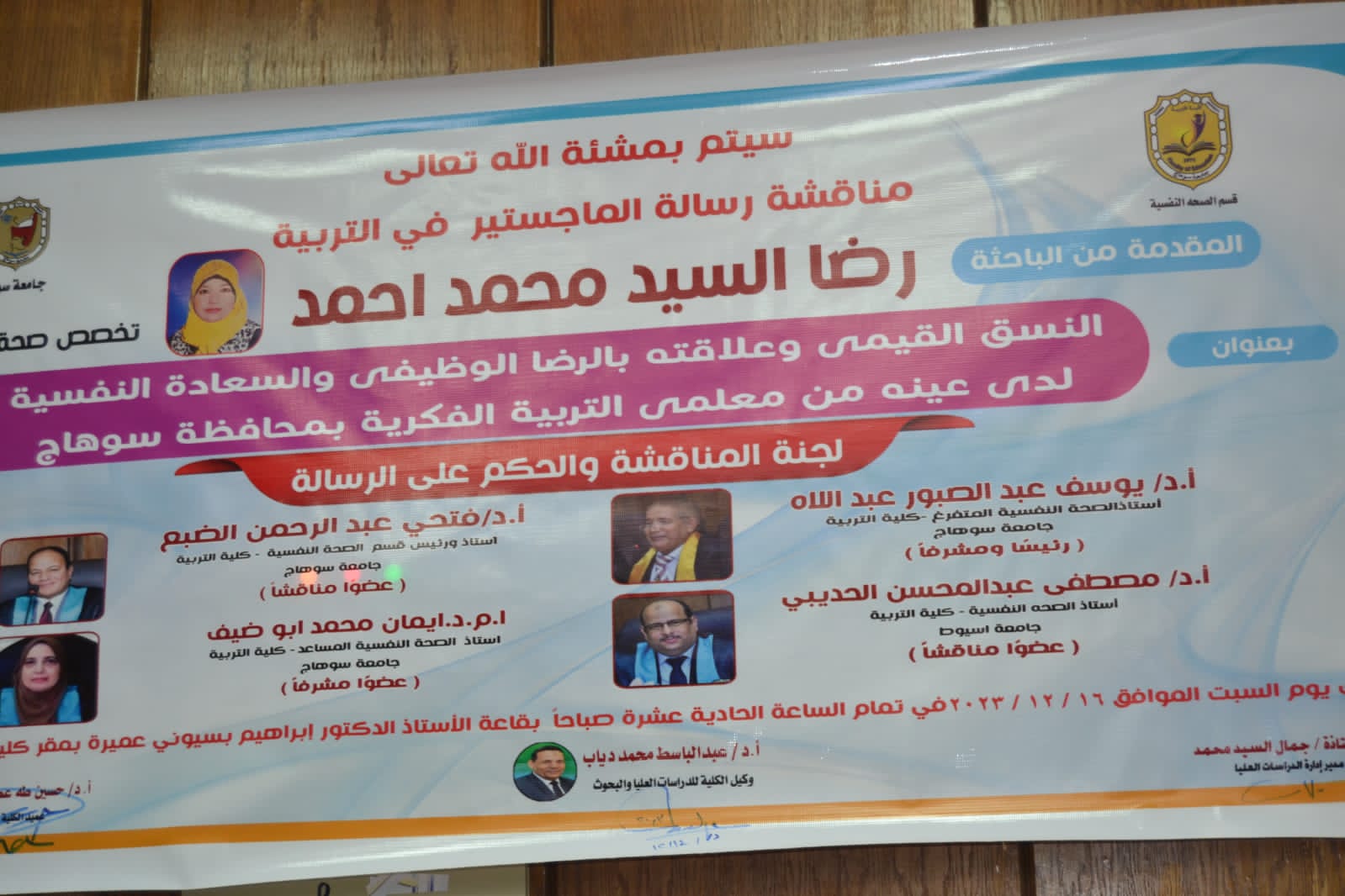 بكلية التربية جامعة سوهاج للباحثة/ رضا السيد محمد احمد “من الخارج”