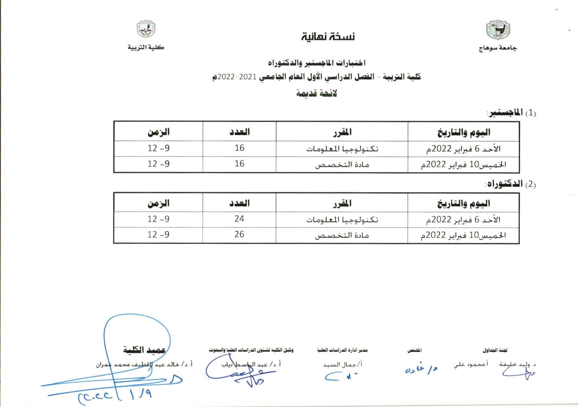 الرئيسية » جداول امتحانات الماجستير والدكتوراه لائحة قديمة و جديدةجداول امتحانات الماجستير والدكتوراه لائحة قديمة و جديدةبواسطة Dr. taha amar10 يناير, 2022