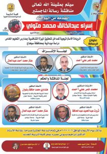 الرئيسية » دعوة لحضور مناقشة رسالة ماجستير بقسم التربية المقارنةدعوة لحضور مناقشة رسالة ماجستير بقسم التربية المقارنةبواسطة Dr. taha amar29 سبتمبر, 2021