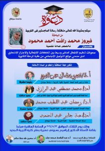دعوة لمناقشة رسالة الماجستير في التربية تخصص الصحة النفسية للباحثة/ فيروز محمد رأفت أحمد