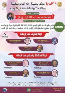 دعوة لمناقشة رسالة دكتوراه تخصص المناهج وطرق تدريس العلوم الأحد القادم