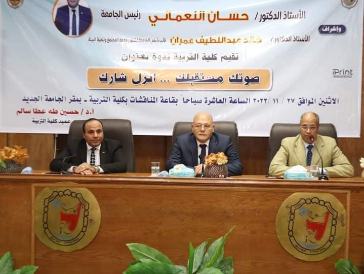 شهد الدكتور حسان النعماني رئيس جامعة سوهاج فعاليات الندوة التوعوية التي نظمتها كلية التربية تحت عنوان “صوتك مستقبلك.. انزل شارك”، والتي تهدف الي رفع الوعي لدى الطلاب بٱهمية المشاركة في الإنتخابات الرئاسية المقبلة بإعتبارها واجبًا وطنياً، وذلك بحضور الدكتور عبد الناصر يس والدكتور خالد عمران نواب رئيس الجامعة، والدكتور حسين طه عطا القائم بعمل عميد الكلية، وعدد من الطلاب وأعضاء هيئة التدريس والعاملين بالجامعة، وذلك بقاعة الدكتور ابراهيم بسيوني بمقر الكلية بالجامعة الجديدة.