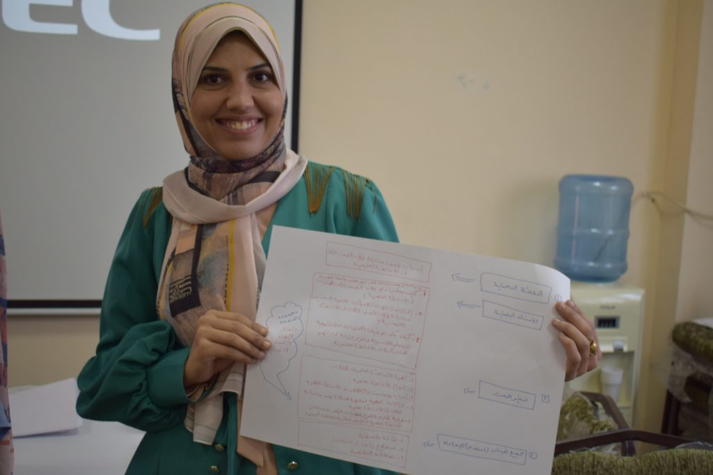 -في نهاية الورشة تم توزيع تقييم للورشة لإبداء المتدريبين ملاحظاتهم حول الورشة.