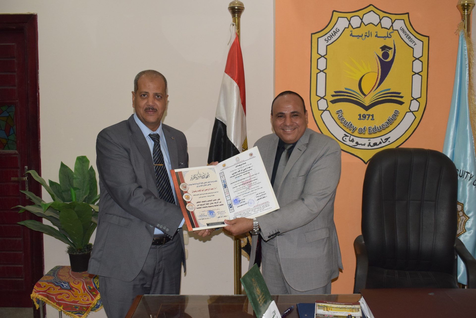 كرم الدكتور خالد عمران عميد الكلية ، صباح اليوم الاثنين، أ.د/ محمود السيد عباس أستاذ أصول التربية والعميد السابق لكلية التربية جامعة سوهاج و أ.د/ عبد الرحمن أبـو المجــد رضـوان أستاذ أصول التربية ووكيل كلية التربية لشئون التعليم والطلاب ، كلية التربية بقنا -جامعة جنوب الوادي ، نظير الجهود المتميزة للهيئة الاستشارية للمجلات التربوية الثلاثة.