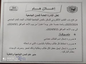 الرئيسية » فتح باب التقديم للسكن بالمدن الجامعية للطلاب الجددفتح باب التقديم للسكن بالمدن الجامعية للطلاب الجددبواسطة Hoda28 أغسطس, 202428 أغسطس, 2024فتح باب التقديم للسكن بالمدن الجامعية للطلاب الجدد
