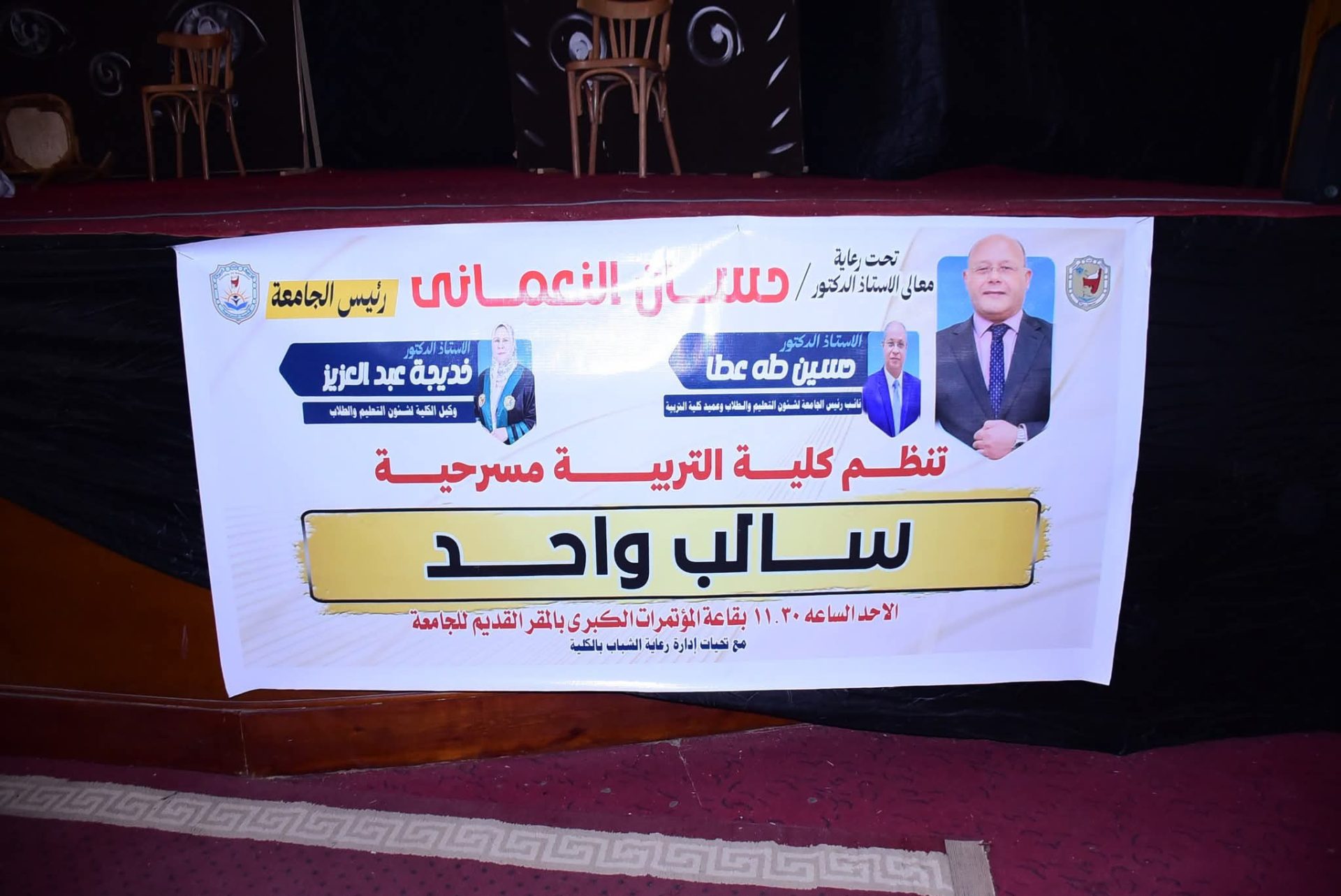 تتقدّم كلية التربية – جامعة سوهاج بخالص التهنئة والتقدير إلى فريق مسرح كلية التربية، وذلك تقديرًا للجهد المتميز والأداء الفني الراقي في العرض المسرحي «سالب واحد»، الذي نال إشادة واسعة وحقق نجاحًا لافتًا.