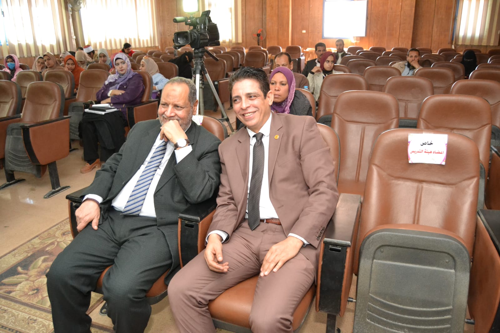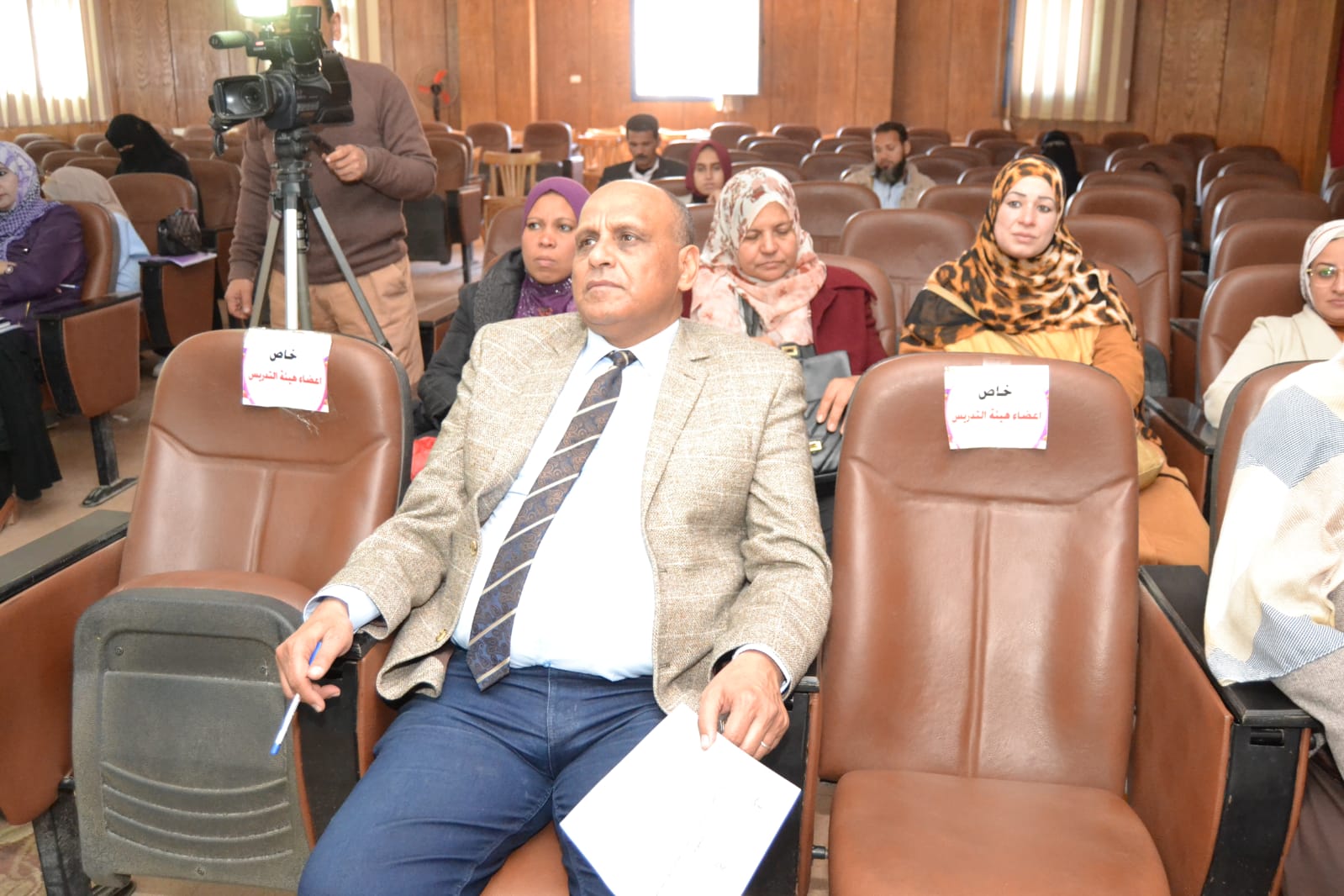 ولفيف من السادة الحضور يضم أعضاء هيئة التدريس والطلاب بكلية التربية