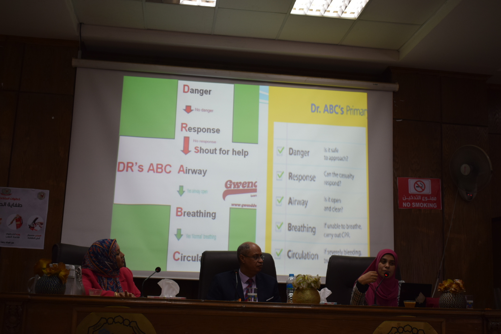 تضمنت الندوة تدريبا عمليا على الإسعافات الأولية في حالات الحوادث والكسور والتعامل مع المصابين في الأزمات والكوارث،
