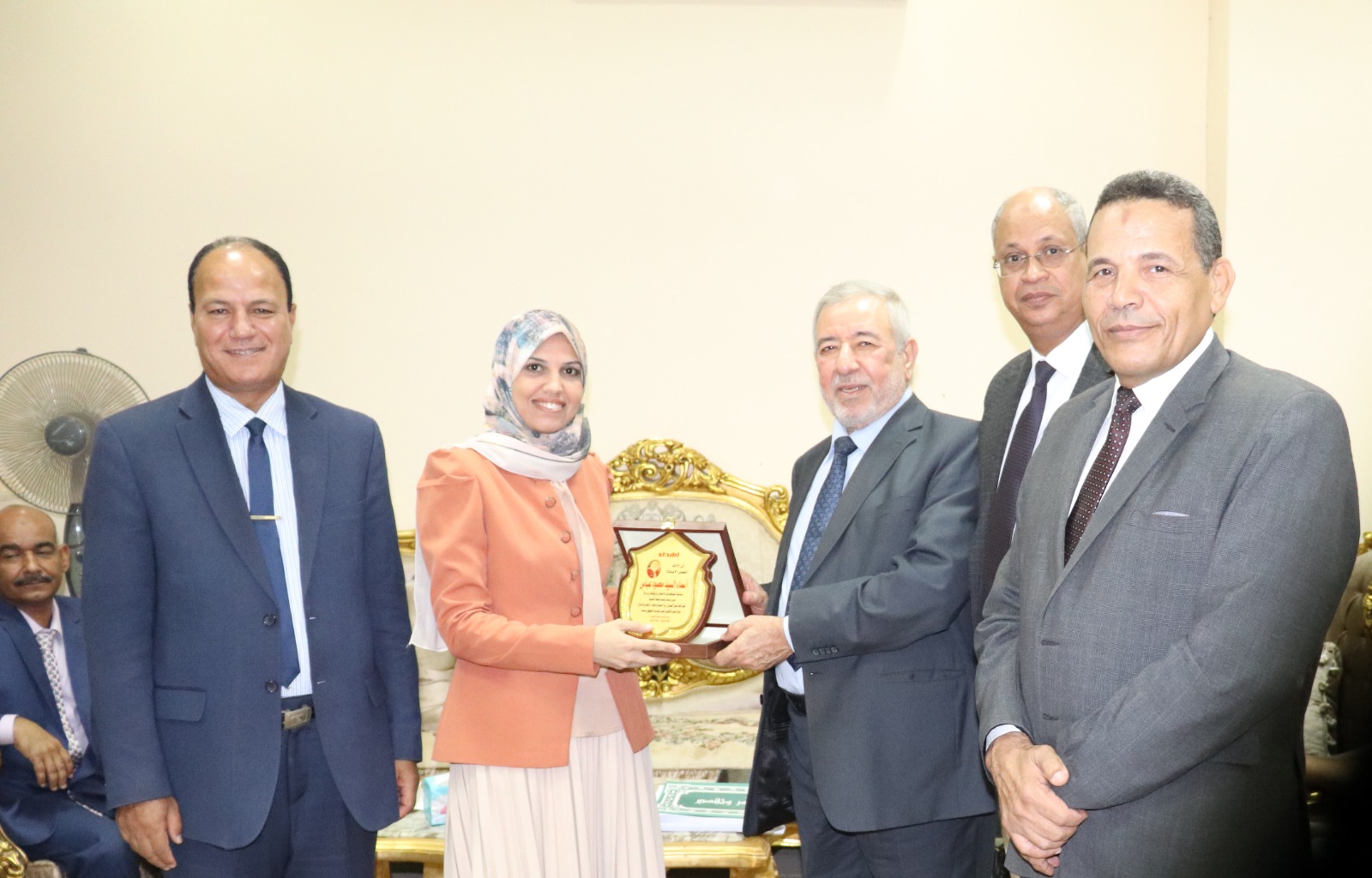 ا.د.هبة جابر عبد الحميد استاذ الصحة النفسية بالقسم؛ وذلك لترقيتها إلي درجة استاذ الصحة النفسية.
