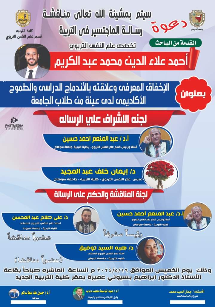 مناقشة رسالة ماجستير بقسم علم النفس التربوي بكلية التربية جامعة سوهاج