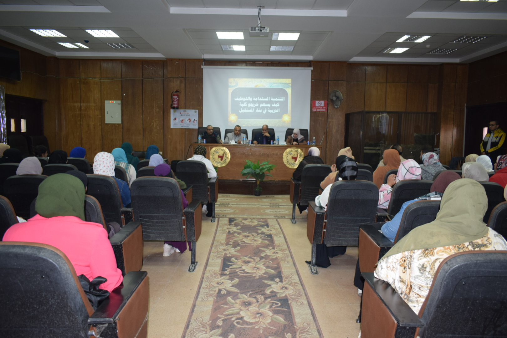 نظّم قطاع خدمة المجتمع وتنمية البيئة بالتعاون مع وحدة متابعة الخريجين بالكلية ندوة بعنوان “التنمية المستدامة لخريجي كليات التربية”