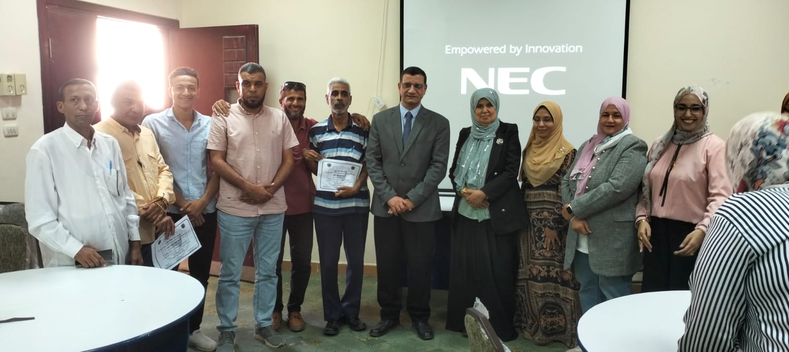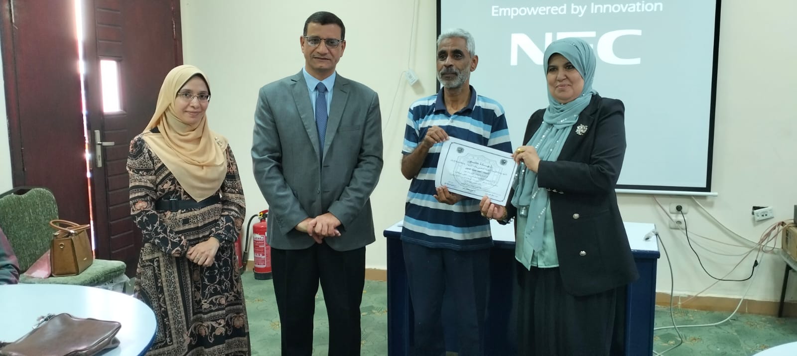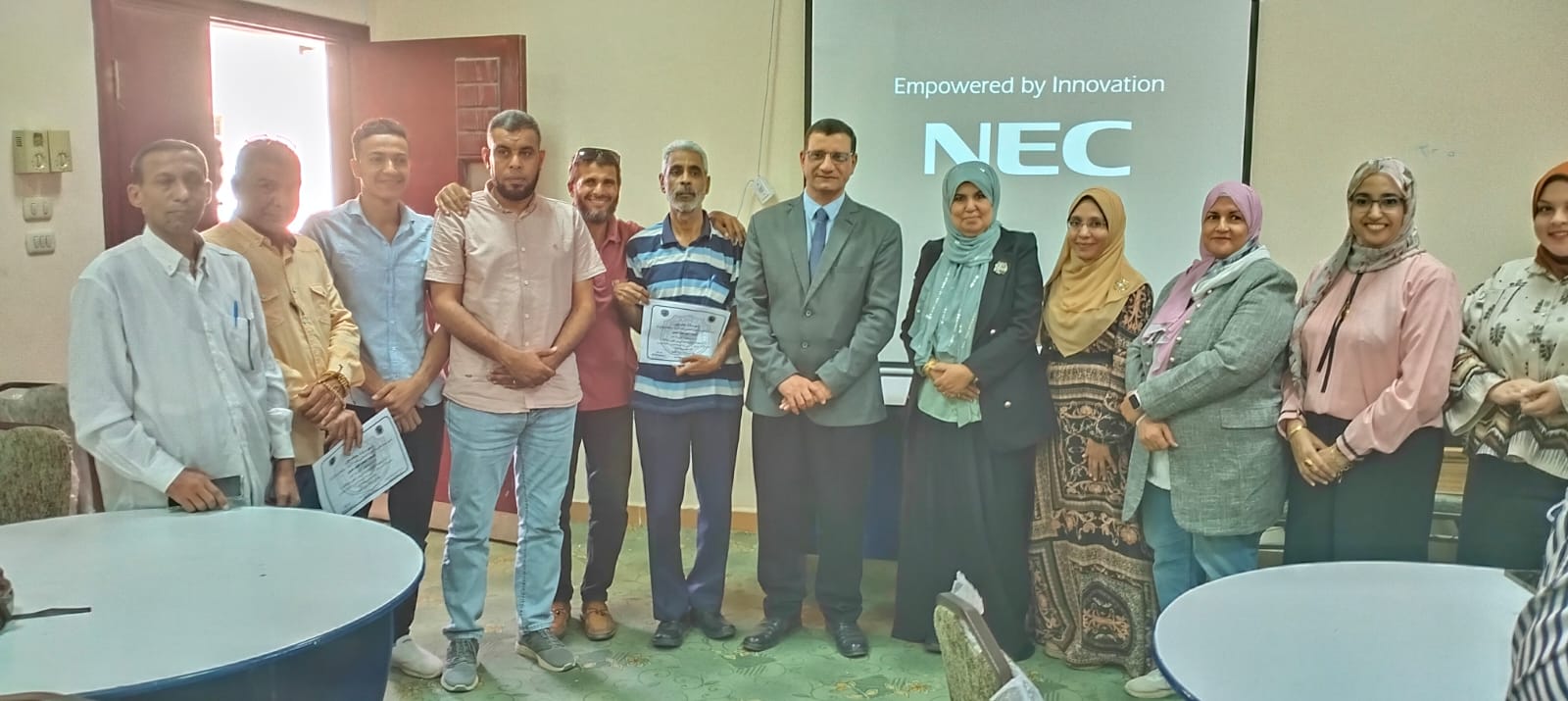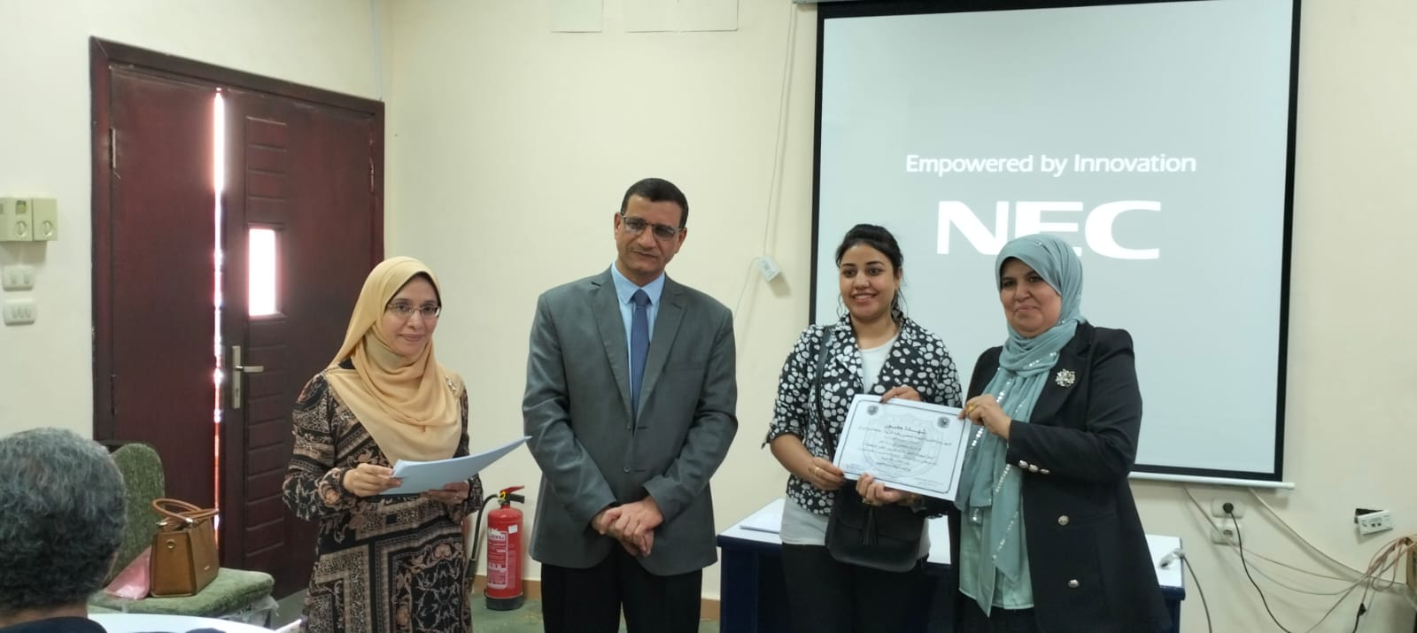 وقد حضر السيد عميد الكلية ووكيل الكلية لخدمة المجتمع واشادو بأهمية دور المعلم والموجه في العملية التعليمة ورغبتهم في التطوير من قدراتهم لمواكبة التطور وتم توزيع شهادات للحضور على وعد بعقد دورات وورش عمل تدريبية لجميع التخصصات لتعم الفائدة على الجميع ويحقق مركز التنمية المهنية اهم الأهداف الخاصة بالمركز .