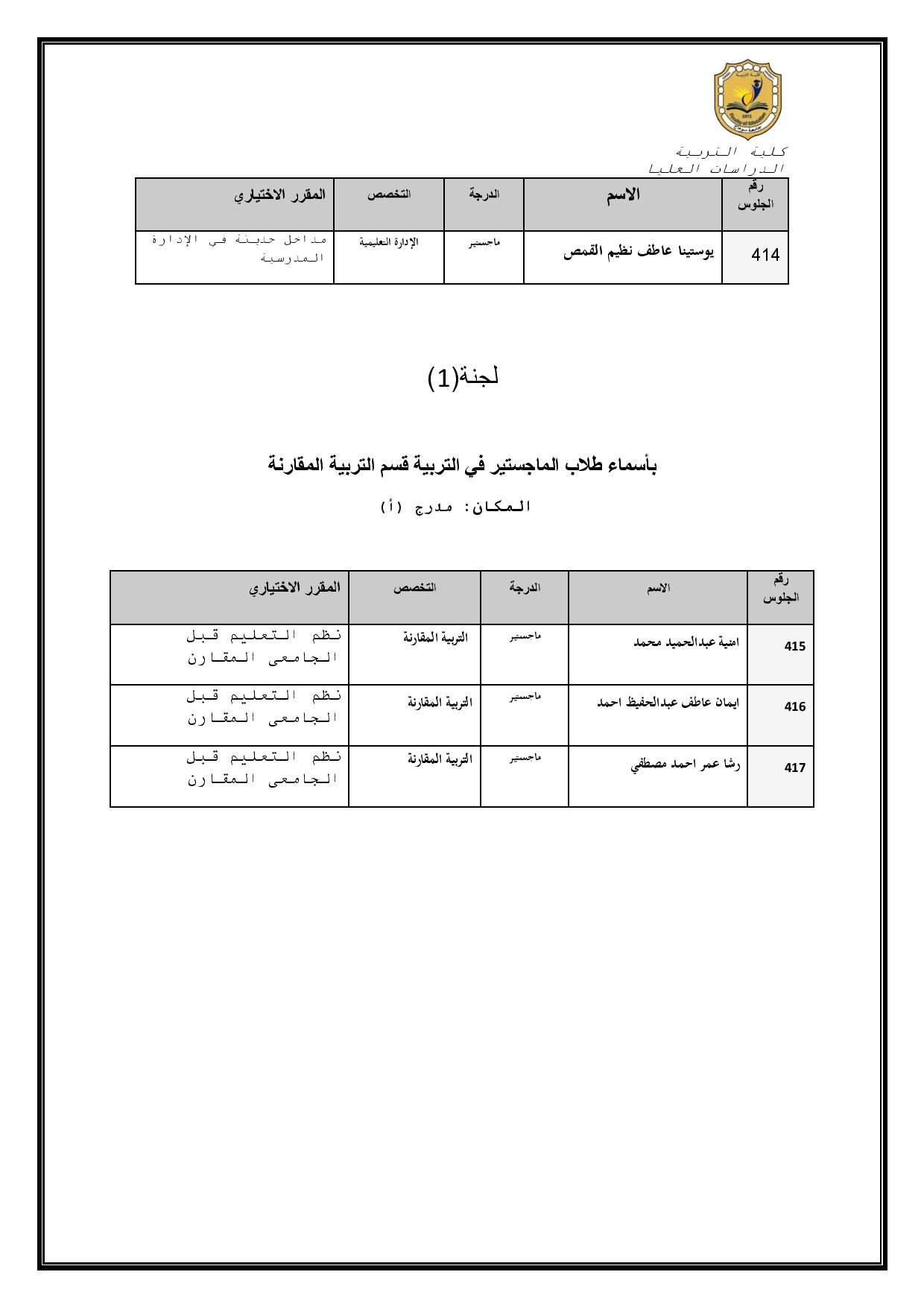 الرئيسية » قائمة باسماء ولجان الماجستير والدكتوراةقائمة باسماء ولجان الماجستير والدكتوراةبواسطة Dr. taha amar30 يناير, 2022قائمة باسماء ولجان الماجستير والدكتوراه