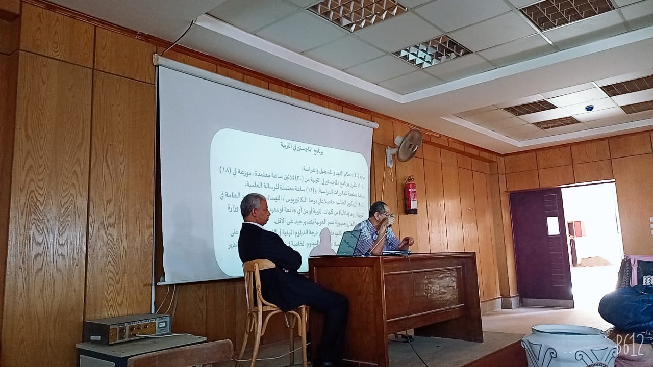 ومن الجدير بالذكر ان أ.د فيصل الراوي و أ.د أحمد الصغير قاما بشرح مبسط عن اللائحة الجديدة الخاصة بالماجستير والدكتوراه بالساعات المعتمدة